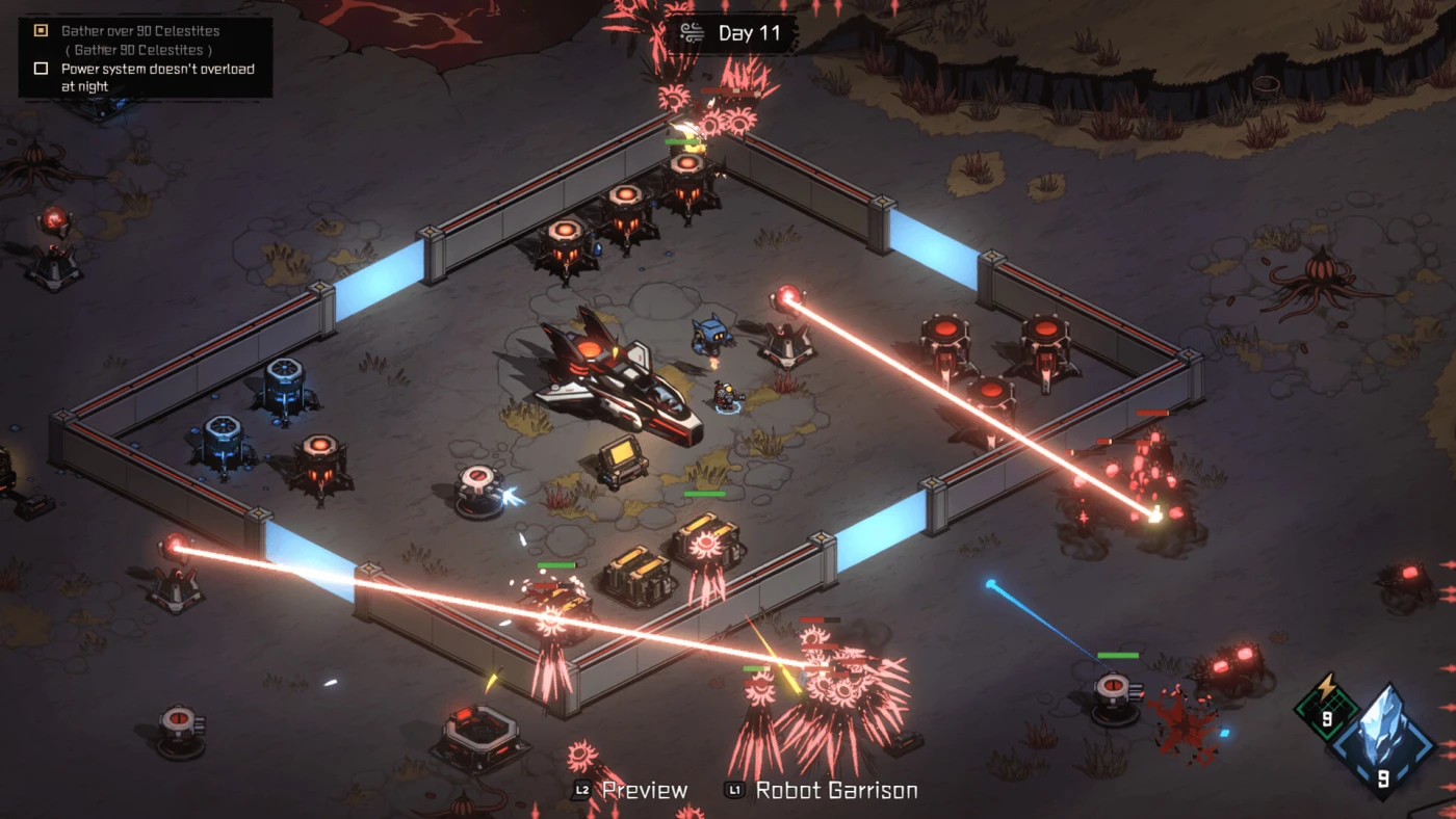 Главная фишка — ограниченность ресурсов. Электричество, топливо, даже место под постройки — всё на счету. Захотите поставить лишнюю турель — не хватит энергии на добытчики. Решите сэкономить на баррикадах — монстры прорвутся к реактору. А ещё тут есть погода: песчаная буря может запросто оглушить ваших ботов, а кислотный дождь — разъесть укрепления. Приходится импровизировать: то использовать рельеф как естественную ловушку, то жертвовать частью базы, чтобы спасти ядро.