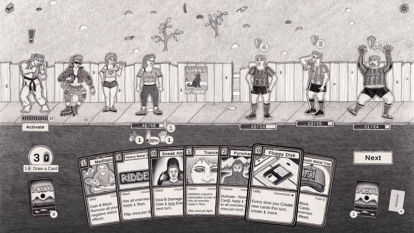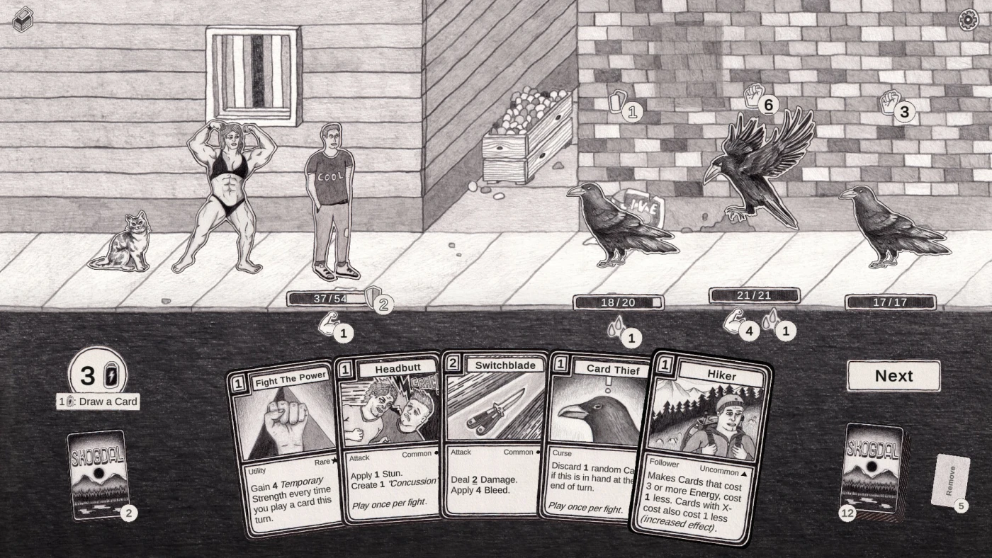 Геймплей — это микс классического построения колод и роуглайта с фирменным северным юмором. Каждая новая попытка открывает ранее недоступные пути на огромной карте, словно кто-то дописывает историю прямо во время вашего прохождения. Особый кайф — механика слияния карт: объедините, скажем, бодибилдера и питомца-вредителя, и получите что-то совершенно неожиданное. При этом игра не даёт расслабиться: даже на лёгком уровне сложности враги могут размазать вашу идеальную стратегию за пару ходов. Визуально всё выглядит как оживший блокнот с набросками — грубоватые, но детализированные рисунки, где каждая карта могла бы стать обложкой панк-альбома. У нас вы можете скачать Skogdal торрент последнюю версию бесплатно на компьютер.