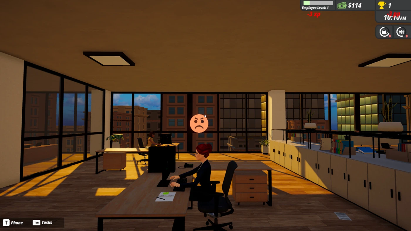 Office Simulator — это игра, где вы начинаете с самых низов, разбирая бумаги и развозя кофе, а заканчиваете созданием собственной компании. Здесь нет жестких дедлайнов — можно задержаться после рабочего дня, чтобы доделать дела, или, наоборот, уйти пораньше, если все под контролем.