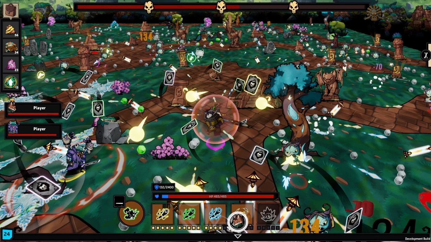 Геймплей – это непрерывный марафон между добычей ресурсов, прокачкой навыков, временными усилениями (как в Vampire Survivors) и эпичными битвами с боссами. Каждый забег уникален: собираете крутые комбинации умений (три максимально прокачанных навыка сливаются в сверхспособность), таскаете брёвна для новых бараков и постоянно балансируете между «сейчас прорвёмся» и «бегите, нас окружают!». Особый кайф – кооперативные синергии: например, когда маг замораживает толпу, а воин врезает по ним критический урон.