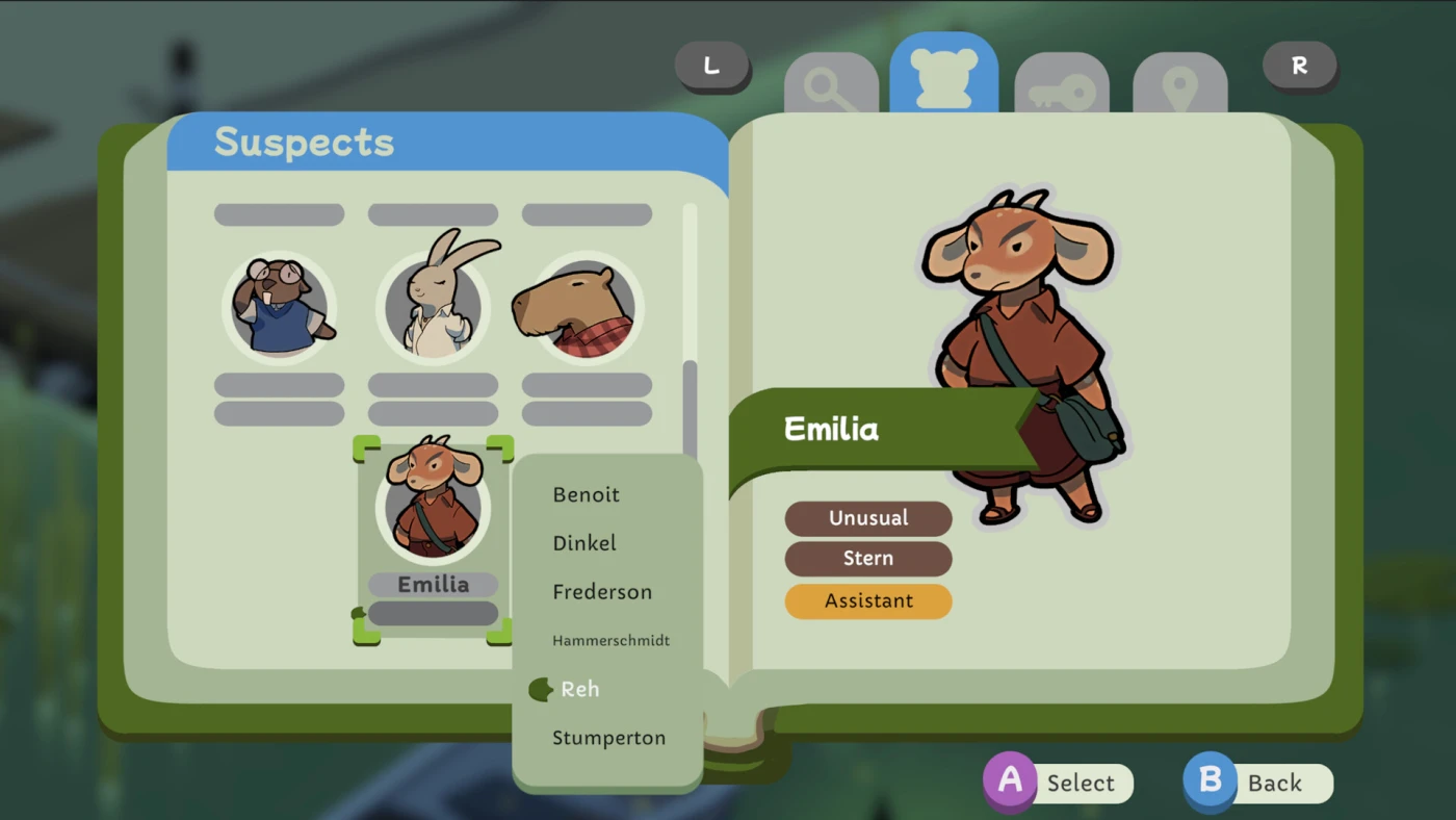 Механика проста, но очаровательна: осматриваете локации, собираете подсказки-слова («фонарик», «подслушивание», «проклятие») и заполняете пробелы в «Дедукциях» – специальной книжке с загадками. Нужно угадать имена персонажей, разоблачить их секреты и даже выяснить, кто подбросил в палатку спрятанную камеру. Игра ловко балансирует между лёгкостью (ошибиться невозможно) и юмором – например, когда пытаетесь определить пол бобра, который упорно не хочет раскрывать свою гендерную принадлежность.
