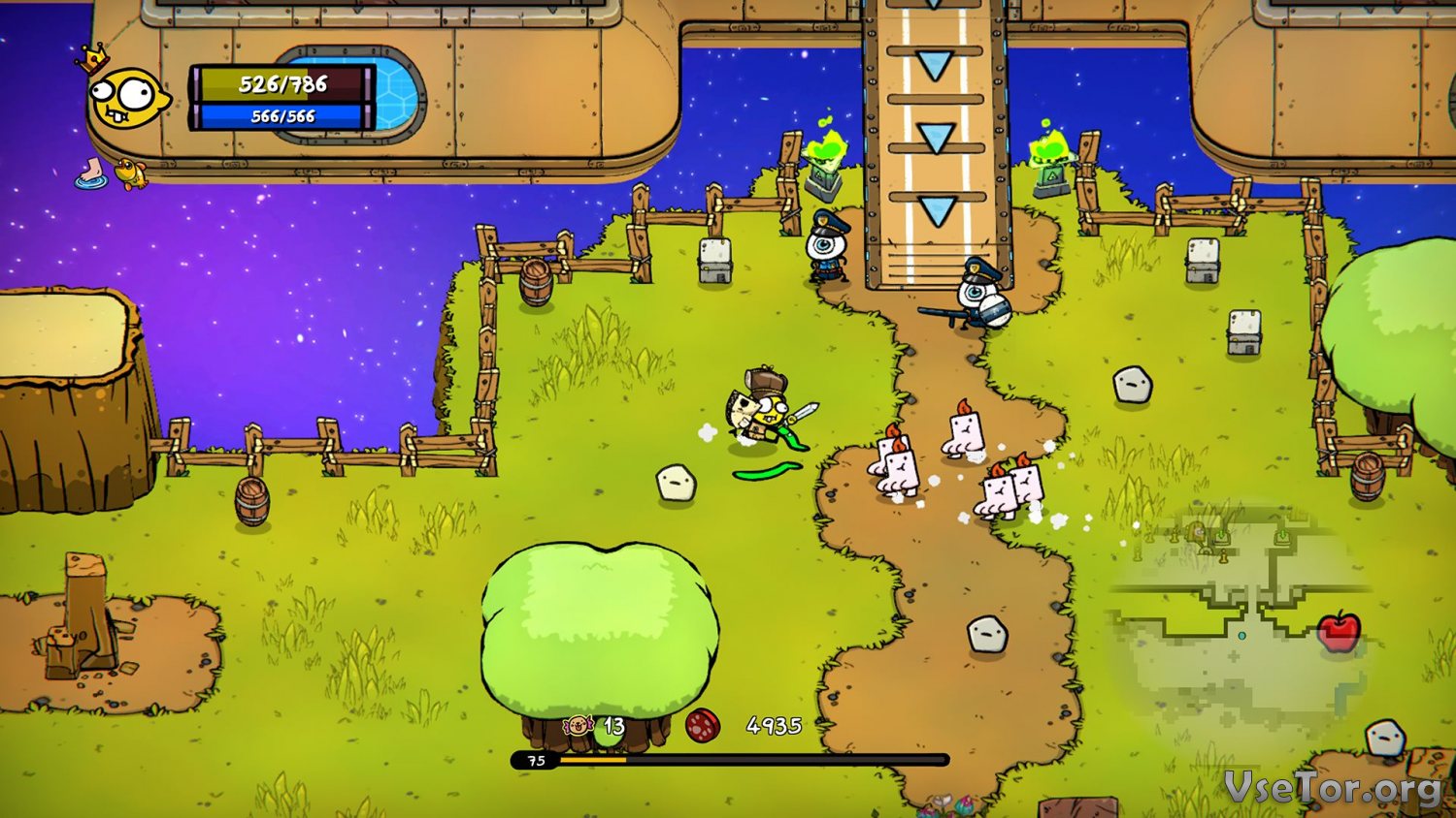 Что же до сражений, так они происходят в шуточной форме и склоняют игрока к взаимодействию с окружающим миром. К примеру. Где-то вам придется найти камень и запустить во врага, где-то придется использовать предметы из окружения, а где-то и вовсе самого врага можно будет кинуть или стукнуть о стену. Вариантов много, и все это выглядит нереально смешно.