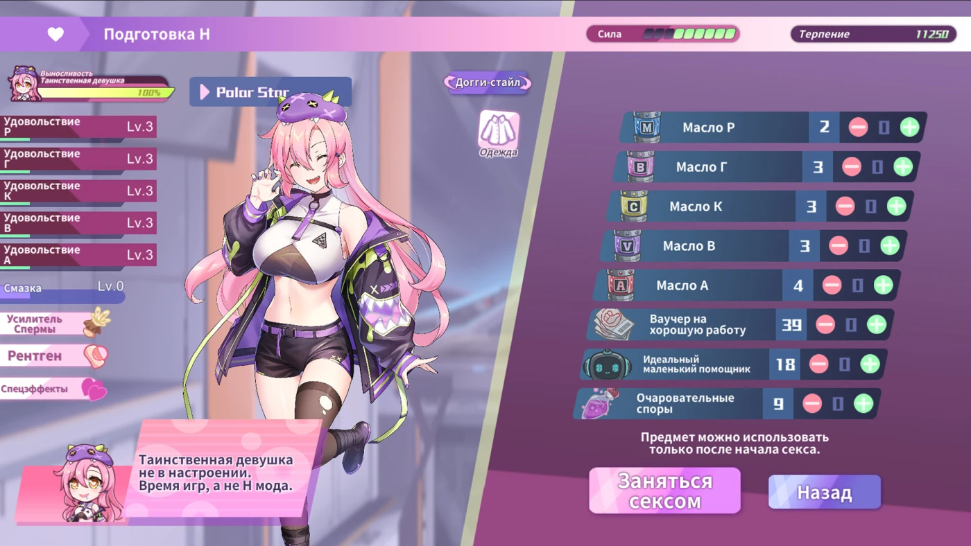 Геймплей игры "Ненасытная принцесса-монстр: межзвёздное путешествие" — это микс стратегического планирования и откровенных сцен. Каждый день приходится выбирать: исследовать новые планеты в поисках редких рецептов, улучшать отношения с кайдзю ласками (или чем-то более пряным) или просто валяться в кровати, восстанавливая силы. Всё ради одной цели — создать кулинарный шедевр и раскрыть заговор бывшего напарника. Анимации здесь сочные, а вариативность поз и нарядов принцессы добавляет перчинки.