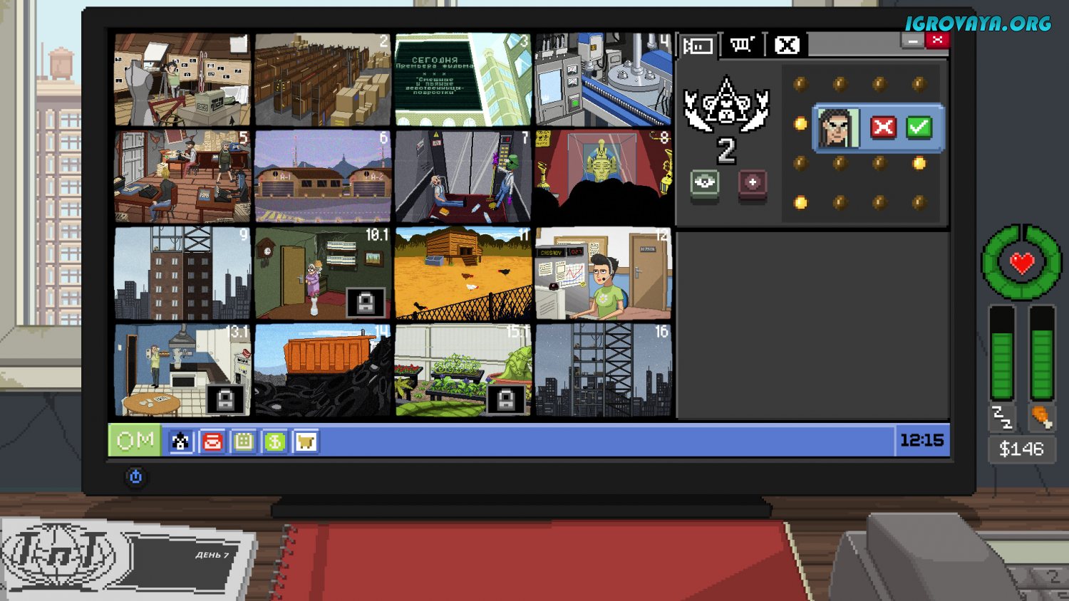 Юмора в игре более, чем предостаточно. Следя за людьми, вы будете становиться свидетелем таких событий, от которых порою будет возникать хохот вперемешку со слезами. Тут вам и крутой начальник, строящий из себя большого босса, а дома одевающий женское платье и начинающий танцевать, и уборщица, следящая за своим боссом, и шофер, фотографирующий переодевающуюся хозяйку ради продажи ее фото папарацци, и другие не менее интересные личности.