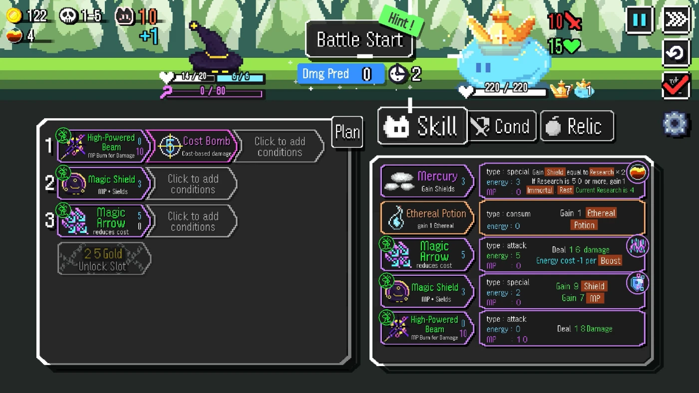 Здесь нет привычного «зажми ЛКМ и крутись», вместо этого — чистая тактика. Можно создать скилл, который жертвует здоровье ради уменьшения стоимости, или атаку, что срабатывает дважды в ущерп эффективности. Сорок различных эффектов и условий открывают сотни вариантов сборок, от безбашенных «бесконечных петель» до хитроумных оборонительных тактик. Особый кайф — поймать момент, когда твой замысловатый алгоритм начинает работать как швейцарские часы, уничтожая врагов в идеальном ритме.