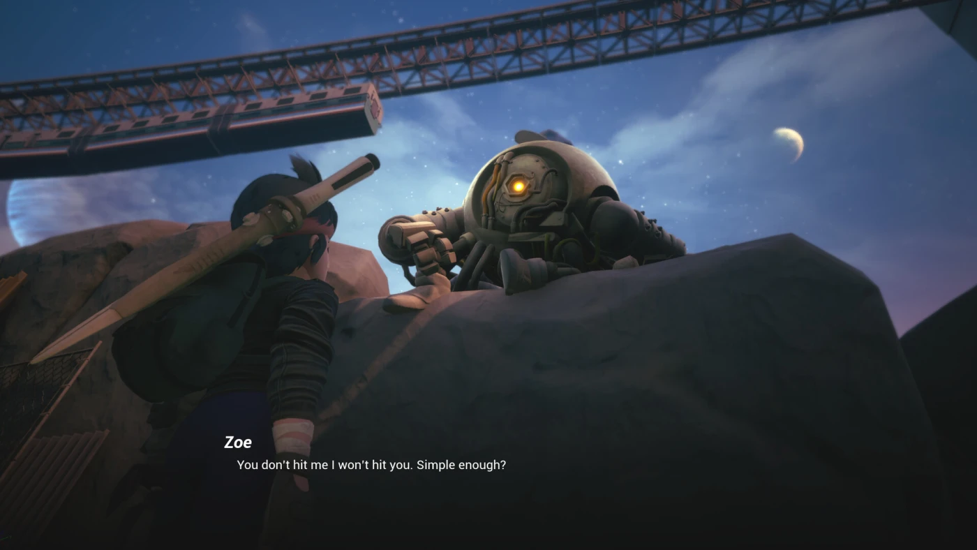 Robots at Midnight — это динамичный soulslike с необычным сеттингом кассетного футуризма, где вы играете за Зои, девушку, очнувшуюся от криосна спустя 20 лет на опустошённой планете Иоб. Мир, некогда бывший курортным раем, теперь населён враждебными роботами, считающими людей «слабаками». Вашей главной задачей станет поиск пропавшего отца и раскрытие тайн загадочного «Отключения», превратившего техномир в кошмар.
