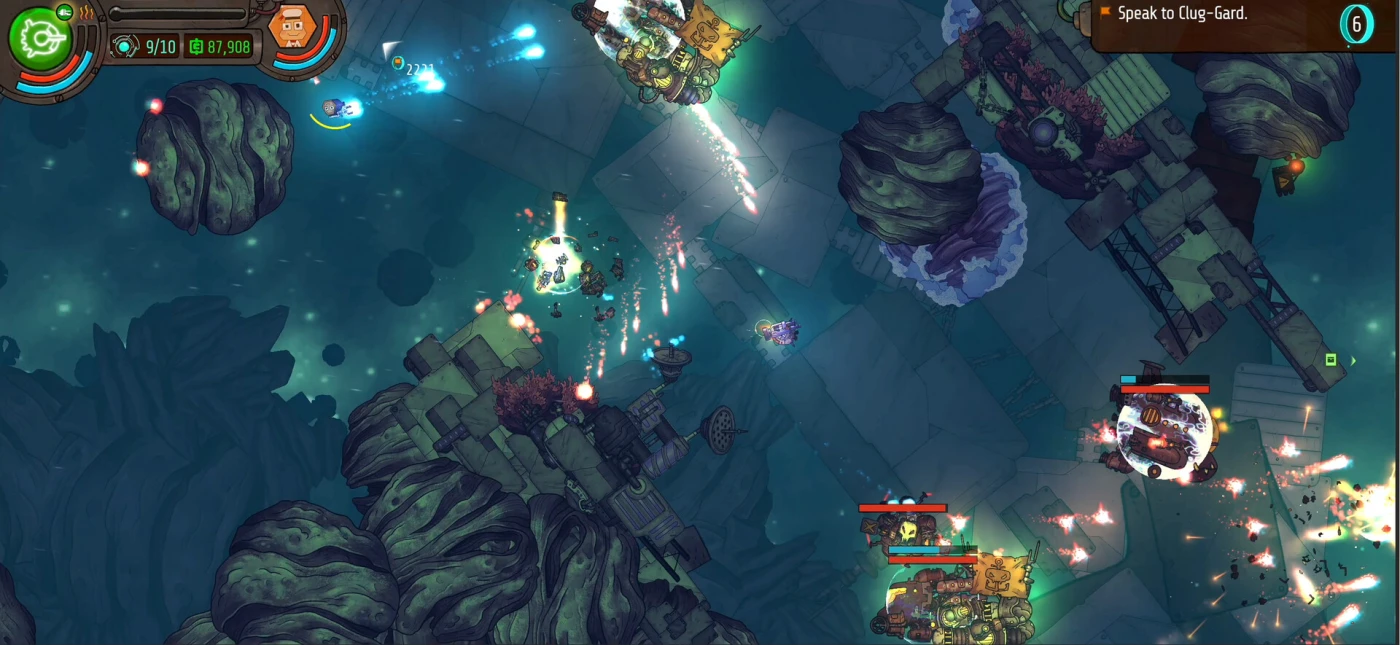 Геймплей строится на динамичных перестрелках: вы маневрируете кораблём, уворачиваетесь от снарядов и подбираете лут, улучшающий характеристики. Особый шарм — в деталях: например, перегрев оружия заставляет менять тактику, а щит регенерируется, если вовремя спрятаться. Хоть враги и не блещут разнообразием, ручные уровни с боссами и мини-игры вроде «Рокбол 4000» разбавляют монотонность.