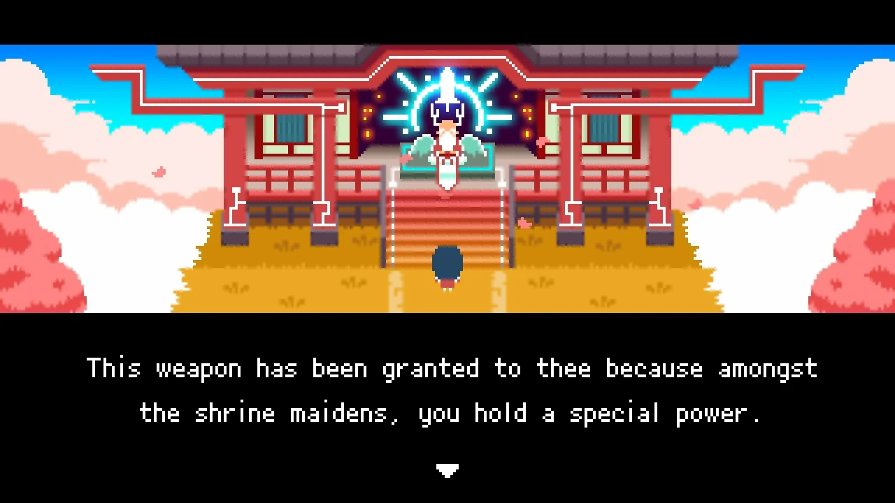 KAMIKO – как прогулка по уютному 8-битному храму, где каждая деталь пропитана спокойной эстетикой синтоизма. Игра предлагает выбрать одну из трёх жриц: мечницу Ямато, лучницу Удзумэ и «капитана Америку» Хиномэ с бросаемым щитом. Каждая не просто меняет геймплей – они словно проводят вас через разные ритуалы: кто-то рубит демонов в капусту, кто-то танцует вокруг них, а третья и вовсе играет в пинг-понг своим щитом.