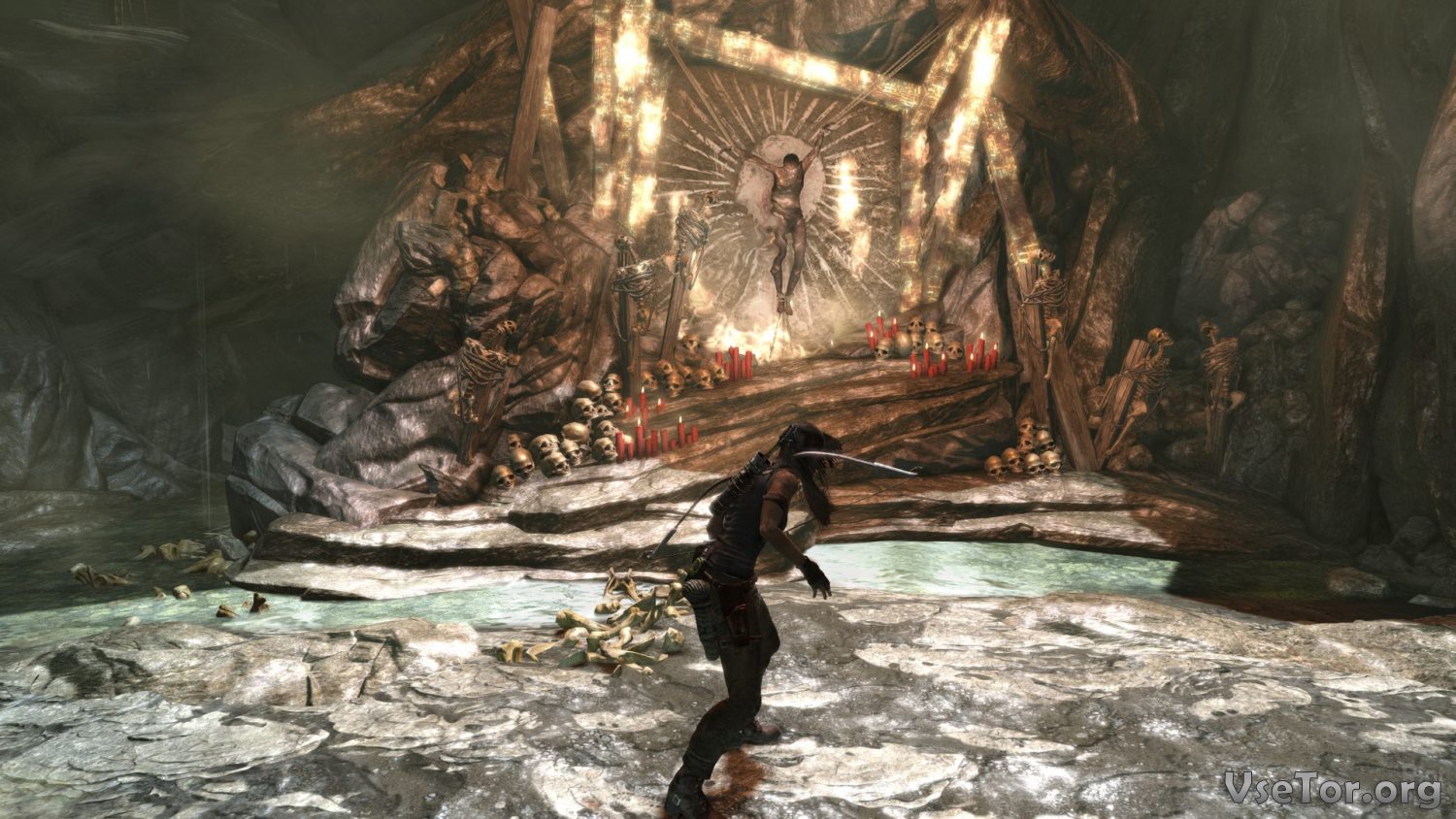 Что до игрового процесса, так он в Tomb Raider 2013-ого года потерпел немало перемен в сравнении с предыдущими частями. Главной же особенностью новой игры стала механика выживания, впервые представленная в серии. Первое время в распоряжении главной героини не будет практически ничего, и вам в ее роли придется выживать всеми возможными способами. Придется добывать пищу, охотиться, согреваться и не только.