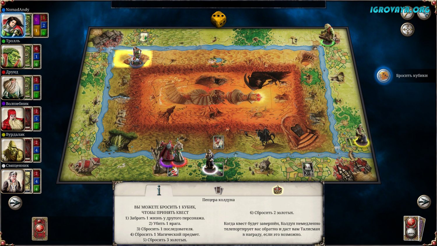 В остальном же все достаточно просто. Вы будете путешествовать по необычному миру настольной игры, собирать лут, участвовать в различных событиях, сражаться путем выбрасывания кубиков с врагами, получать опыт и прокачивать своего героя. Но будьте готовы и к испытаниям – каждый раз, каждый ваш ход, будет случаться что-то такое, из-за чего вы можете лишиться жизни или даже всего нажитого героем имущества. У нас вы можете скачать Talisman: Digital Edition торрент последнюю версию бесплатно на компьютер.