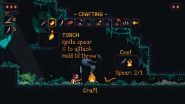 Мир игры живёт своей жизнью: травоядные игнорируют вас, хищники атакуют без предупреждения, а вдали мелькают тени механических существ. Прокачка здесь нелинейная – можно качать здоровье, увеличивать задержку дыхания или учиться крафтить огненные копья, чтобы прожечь путь сквозь джунгли. Но самое приятное – движение. Герой умеет делать длинные прыжки после кувырка, а копья можно воткнуть в стену как ступеньку.