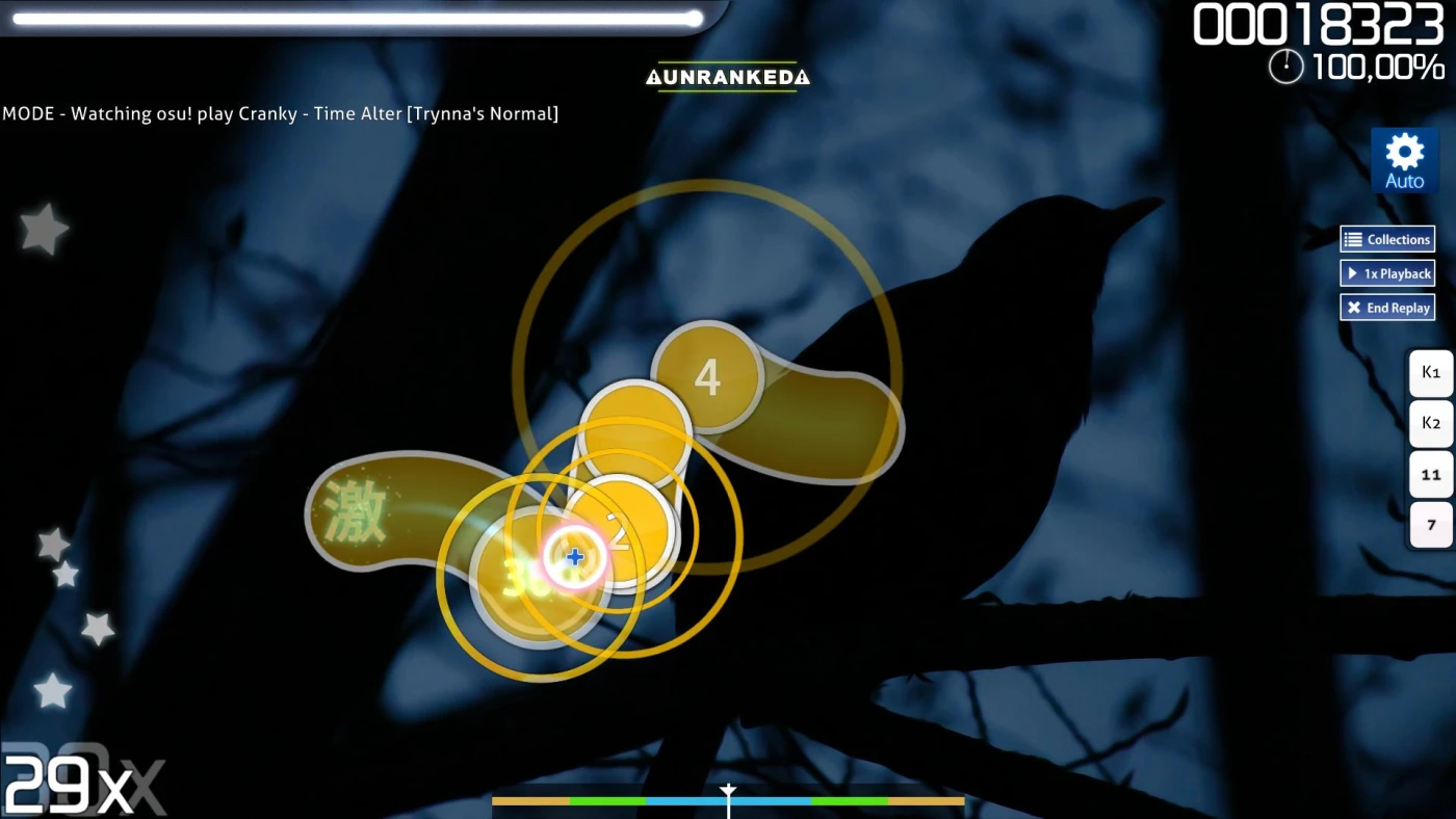 Четыре режима — четыре разных способа проверить себя. В osu! (стандарт) вы кликаете по нотам в такт, в taiko — бьёте по виртуальным барабанам, в catch — ловите падающие фрукты, а в mania — жмёте клавиши, как в Dance Dance Revolution. Механики просты, но чем сложнее карта, тем больше она напоминает экзамен на выживание: круги мелькают, слайдеры петляют, а спиннеры требуют бешеной скорости мыши. И да, после пары провалов трек начинает звучать как насмешка.