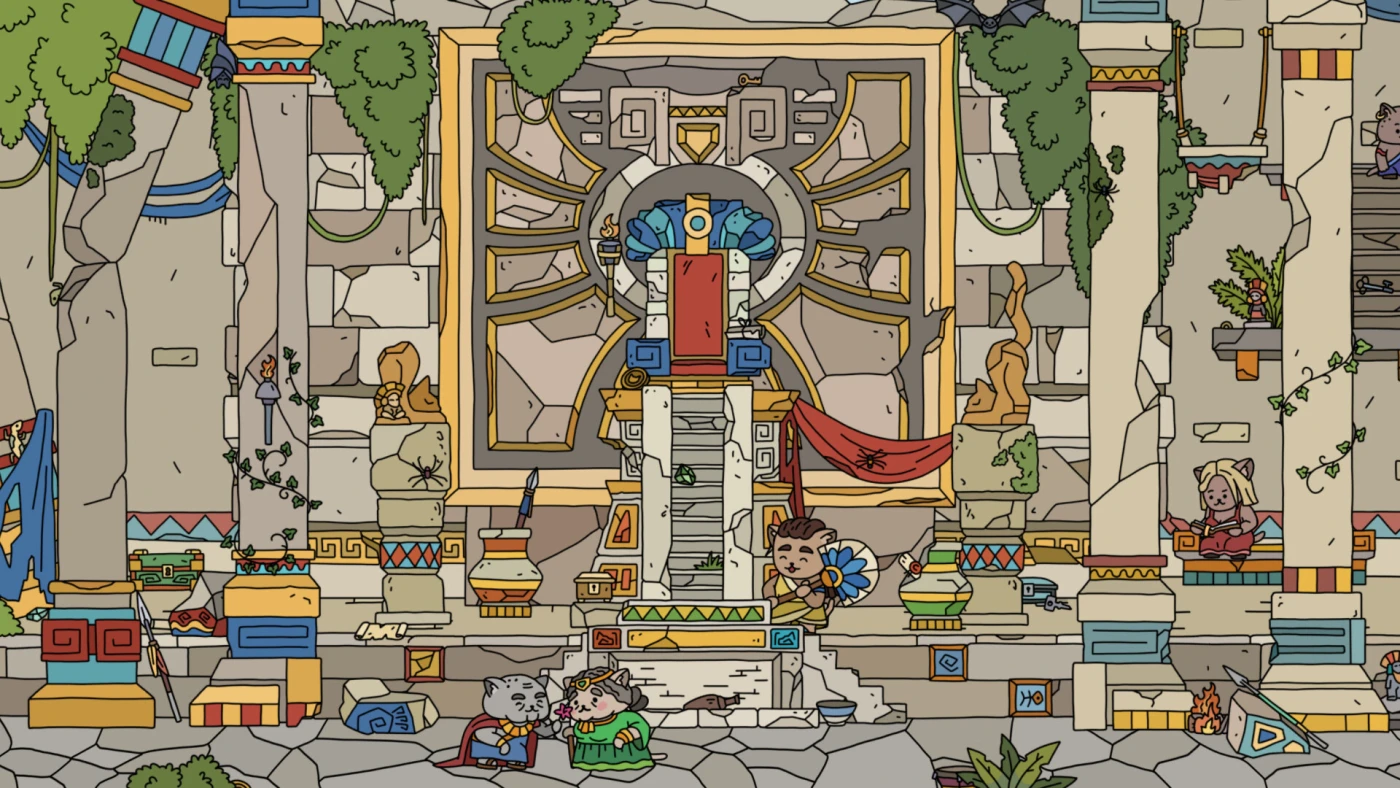 Главная фишка — свобода выбора. Вместо списка «найди 10 сов» — три случайные категории предметов (например, «свечи», «змеи» и «керамические черепа»), и вы сами решаете, за что взяться. Чем больше находите, тем ярче становится окружение: серые камни обрастают узорами, безмолвные площади наполняются музыкой, а жители — от торговцев до шаманов — начинают рассказывать свои истории. Да, здесь есть и сюжет: через диалоги и детали среды вы постепенно раскроете тайны этого места.