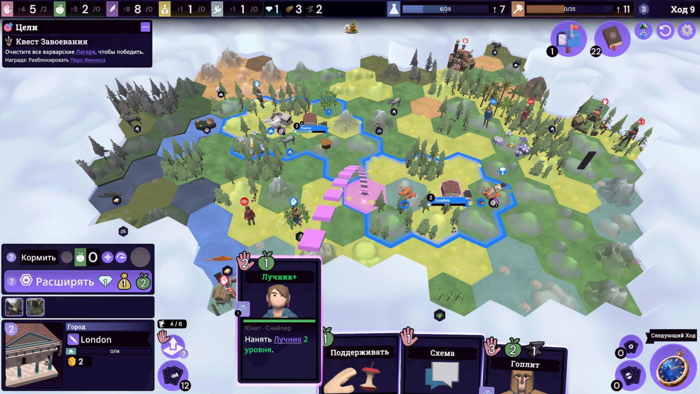 Ваша задача – не просто выжить, а перехитрить систему. Комбинируйте технологии (их больше 200), улучшайте города и армии, но помните: каждый ход ресурсы сгорают, если не потрачены. Тут нет идеальных билдов – только импровизация. Поставите ферму рядом с рынком? Получите бонус. Разовьёте науку? Откроете новые карты. А если проиграете – начнёте заново, но с «Чармами»: перманентными бустами, которые делают каждую новую попытку уникальной.