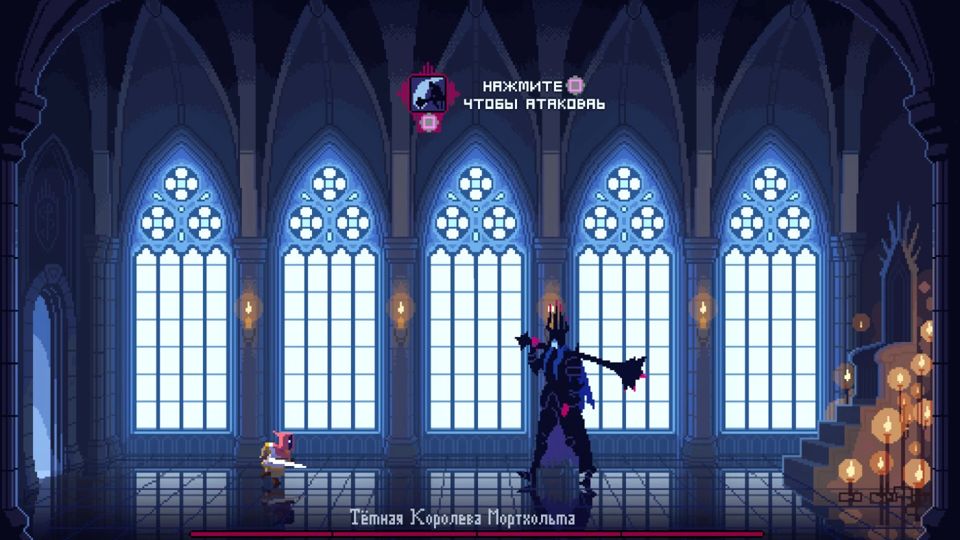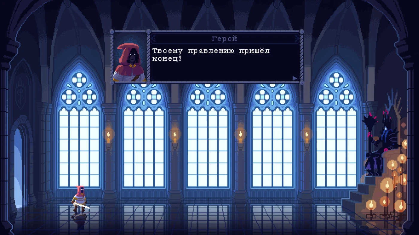 Между схватками вас ждут диалоги, где вы решаете, как Королева будет относиться к своему вечному противнику: с презрением, любопытством или странной симпатией. Пиксельная графика подчеркивает контраст между величием темной владычицы и скромностью героя в красном плаще, а атмосферу дополняет мрачная музыка, звучащая как последний аккорд перед падением империи.