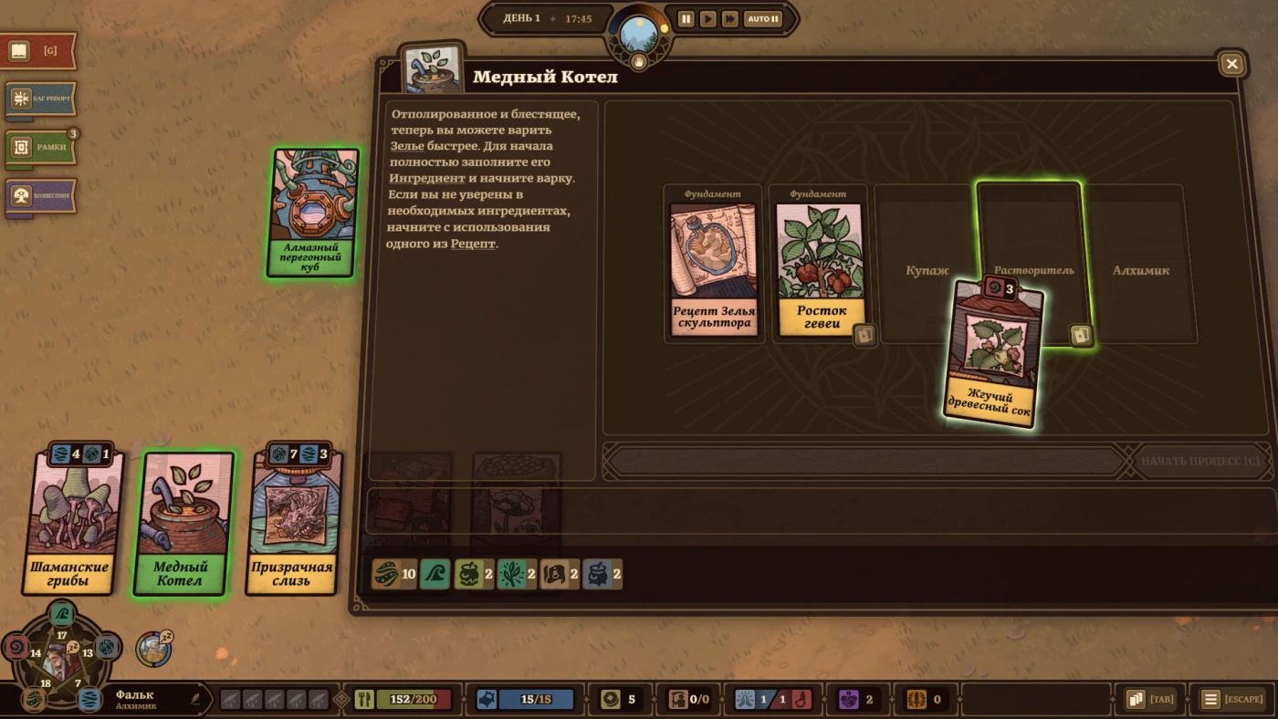 Тут нет мелочей – даже копеечный гриб может стать основой эликсира славы, если правильно сочетать его с одним из ста ингредиентов, разделённых по пяти таинственным Столпам Реальности. Отправляйте авантюристов добывать редкие компоненты в заражённые леса или проклятые руины, но не забудьте снабдить их зельями – иначе вернутся совсем не в том виде, в котором ушли. А ещё – стройте, торгуйте, интригуйте, превращая лачугу в центр алхимического могущества, ведь даже Сборщик Налогов однажды дрогнет перед банкой с «чистым восторгом».