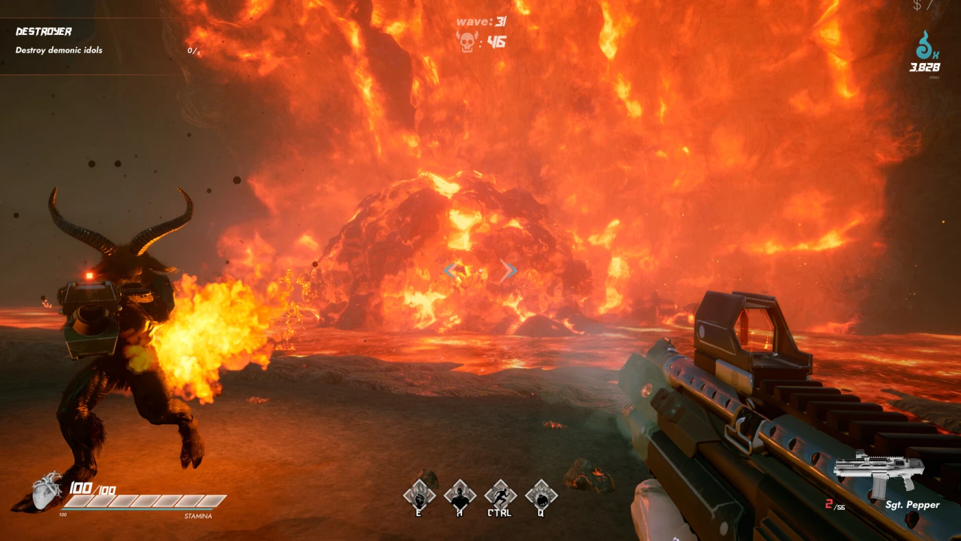 Игра построена на скорости и агрессии: бег, прыжки, взрывы, дробовик в руках и целая армия тварей на пути. Каждое убийство – шаг вперёд, каждая волна – испытание. Вы используете кинетические удары, бросаете мины, впадаете в ярость берсерка, взлетаете с помощью суперпрыжков – всё, чтобы не давать врагам шанса. Оружие можно покупать и улучшать, экспериментируя с тактикой: кто-то предпочитает стрелять, кто-то – врываться в гущу врагов и крушить всех врукопашную.