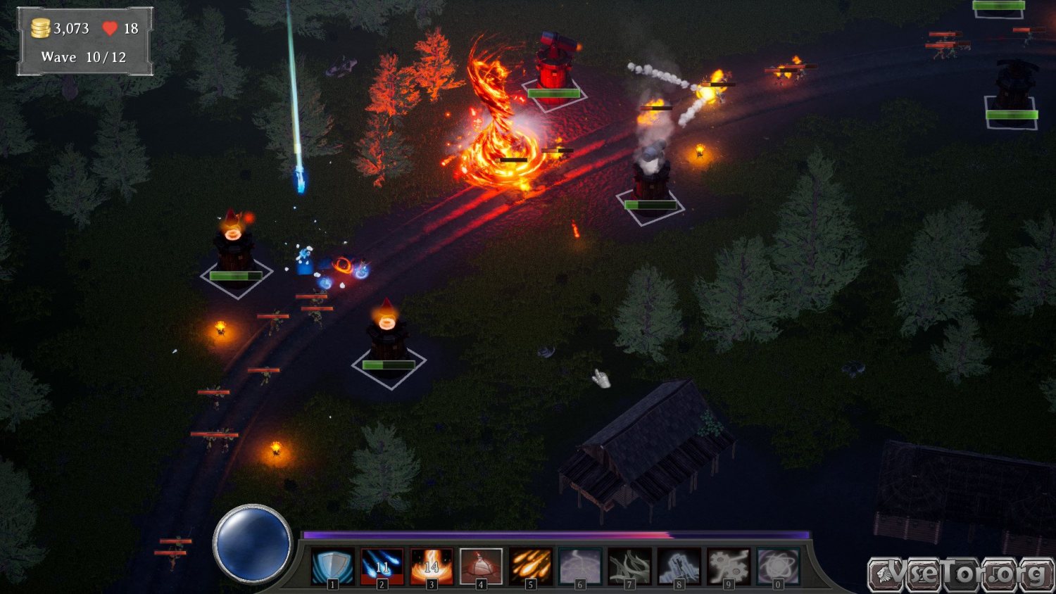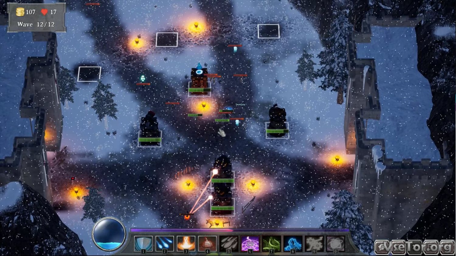 Накладывайте магические заклинания, усмиряйте врага огнем, метайте в него арбалетные стрелы, замедляйте его на время прохождения самых защищенных участков с помощью специальных морозных заклинаний, и используйте все инструменты в борьбе за безопасность королевства. Но не забывайте и прокачиваться. Да-да, каждая башня может быть прокачана, и более того, по мере своей личной прокачки вы будете получать доступ еще и к новым сооружениям, каждое из которых будет сильнее и мощнее предыдущих.