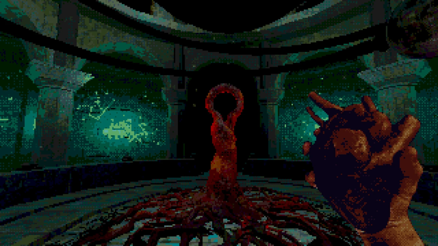 Игра построена на контрастах: узкие тоннели, где еле протискиваешься, и огромные пространства с причудливой 3D-архитектурой; жуткие моменты, заставляющие замирать, и почти сюрреалистические ландшафты, будто сошедшие с картины. Визуал держится на крупной пикселизации – это не просто стиль, а часть ощущения: мир размыт, как сквозь пелену боли. Зато звук – плотный, давящий, идеально ложится на каждую сцену, усиливая тревогу. Здесь почти нет текста, всё – образы, символы, намёки. История раскрывается в конце, но путь к ней – самое важное.