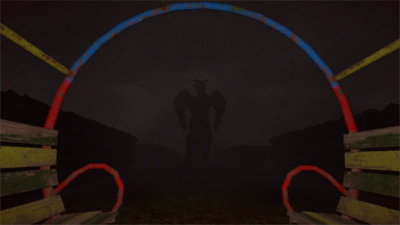 Клоун слышит вас – стоит только пошевелиться, как он начинает приближаться. Вы прячетесь за ящиками, в палатках, затаив дыхание, пока его шаги не затихнут. Геймплей строится на осторожном передвижении, свободном исследовании и внезапных погонях. Локация – старый цирк – открыта: можно бродить между аттракционами, заглядывать в фургоны, искать афиши, спрятанные в самых неожиданных местах. Визуально всё выдержано в стиле старой видеозаписи – плёночная зернистость, помехи, лёгкая дрожь камеры усиливают ощущение, будто вы не в игре, а во сне.