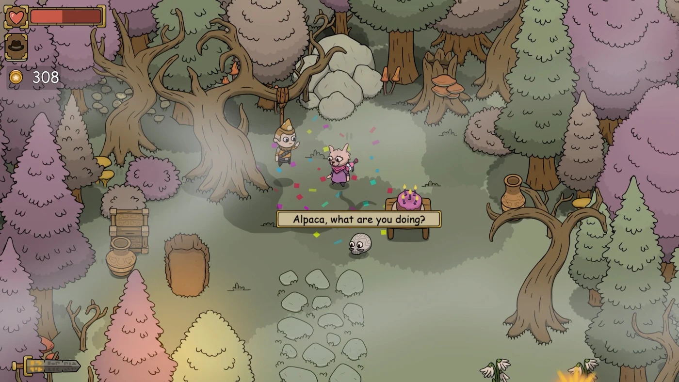 Dreamout – сюрреалистичное 2D-приключение, где вы играете за Хик, милую, но изрядно подвыпившую альпаку, проснувшуюся после магического похмелья в мире, где здравый смысл ушёл в отпуск. Вместо логики – бутылки, вместо законов физики – капризы гравитации, а вместо обычных врагов вас ждут арбузы-гопники, инфернальные цыплята и человек-морковка. Вы будете ловить странные предметы в реках, кидать бомбы в порталы, пить всё подряд (даже если это явно не напиток) и выполнять квесты, от которых волосы встают дыбом – например, спасать деревню, швыряя летающие головы на поле.