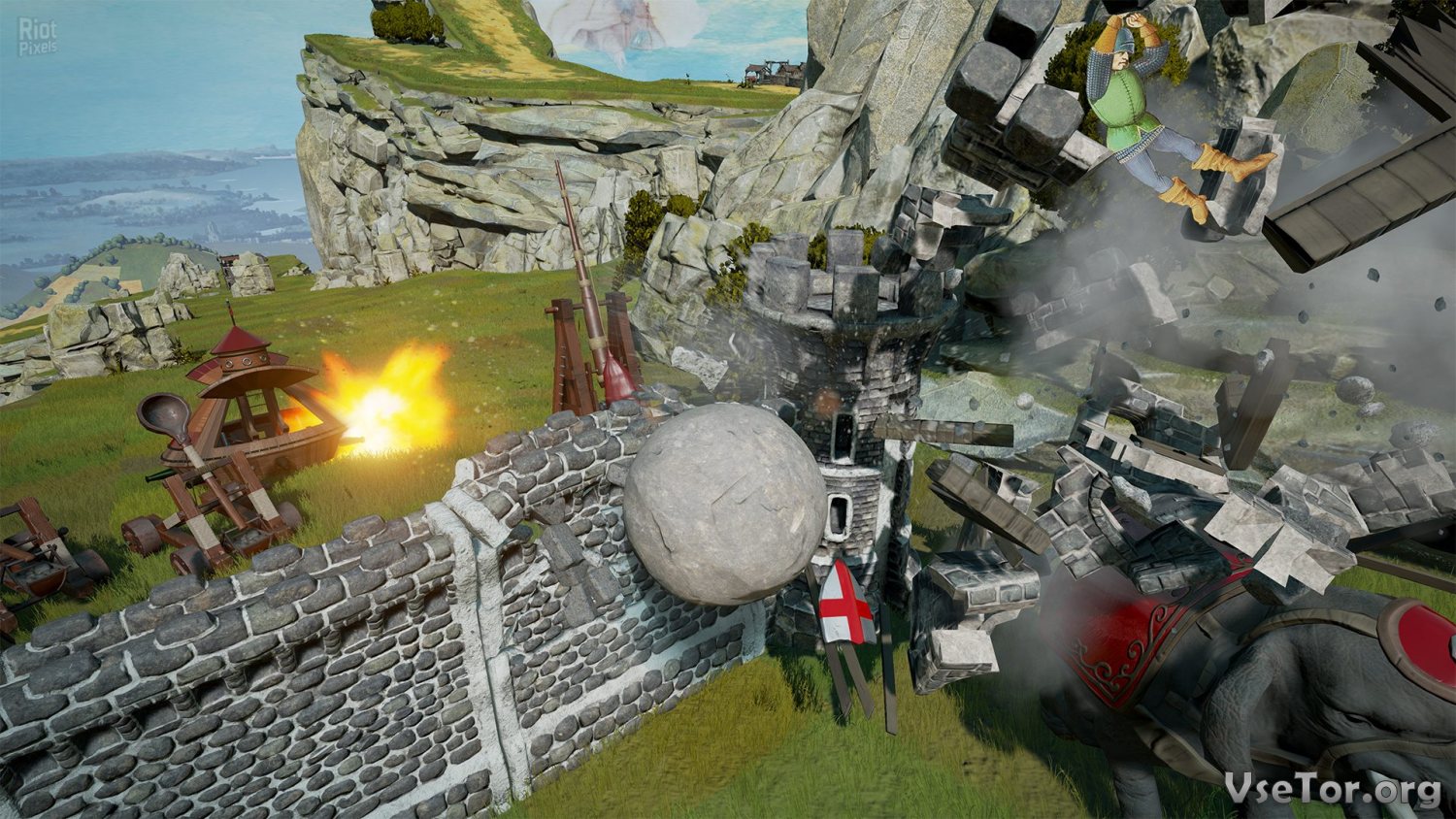 В остальном же игра осталась прежней. Мчитесь напролом к цели, пробивайте стены, разгоняйтесь на буграх и на полной скорости врезайтесь в башни и ворота крепостей, расставляйте на пути врага быков и других юнитов, наслаждайтесь веселыми видеозаставками и просто получайте удовольствие. У нас вы можете скачать Rock of Ages 2 Bigger & Boulder торрент последнюю версию бесплатно на компьютер.