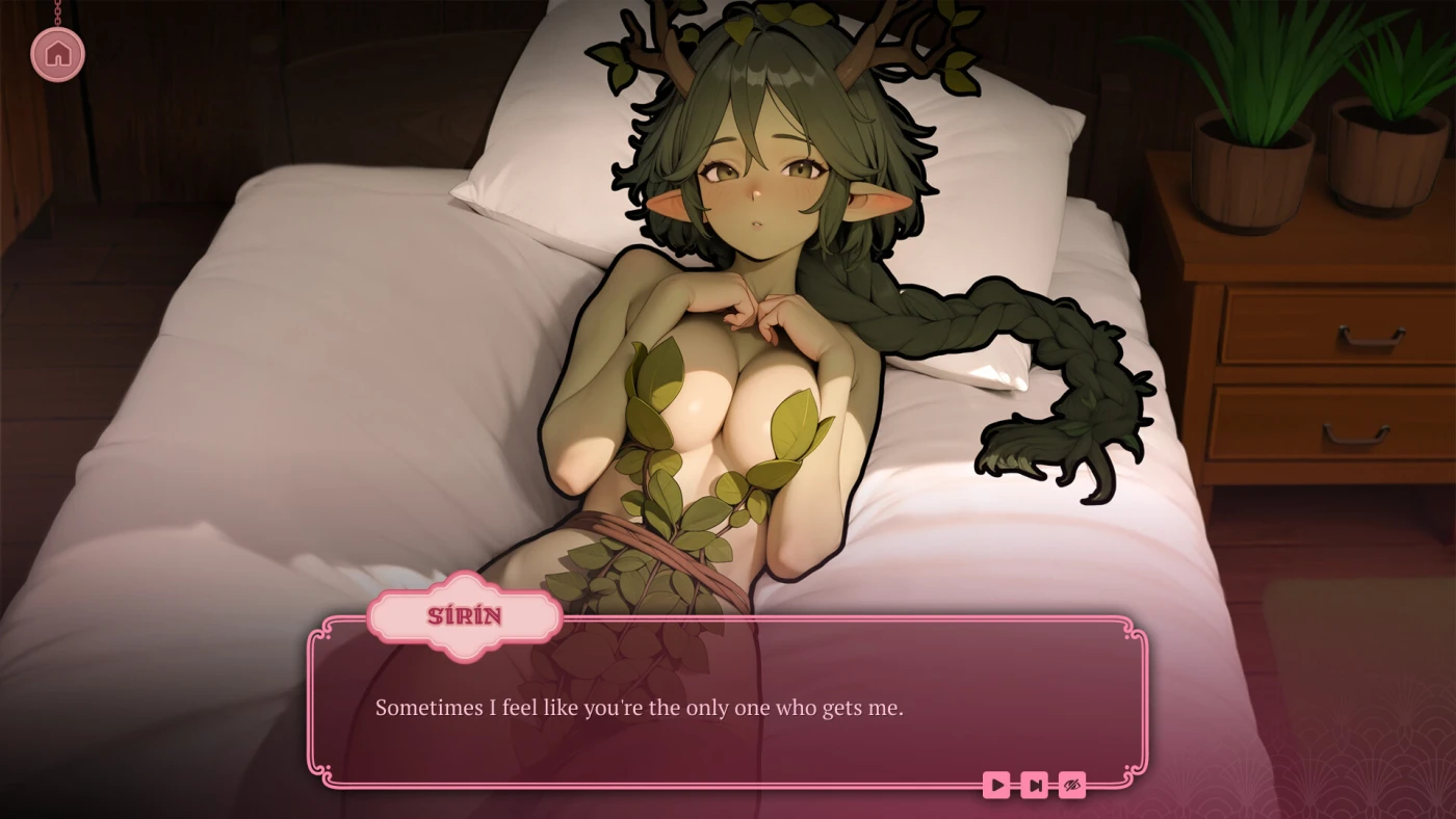 Геймплей строится на двух простых, но уютных циклах: расслабленный кликер даёт ресурсы, а менеджмент комнат – смысл. В баре после закрытия можно заказать волшебные коктейли, усиливающие прогресс или дарящие случайные бонусы. С каждой новой героиней раскрываются визуальные сцены, диалоги в духе визуальных новелл и интимные моменты, созданные для того, чтобы задержаться подольше. Арт стиль – сочный, детализированный, с акцентом на эстетику «монстр-вуайфу»: эльфийки, дриады, полурк-тренер – все обладают уникальной харизмой и анимированными сценами.