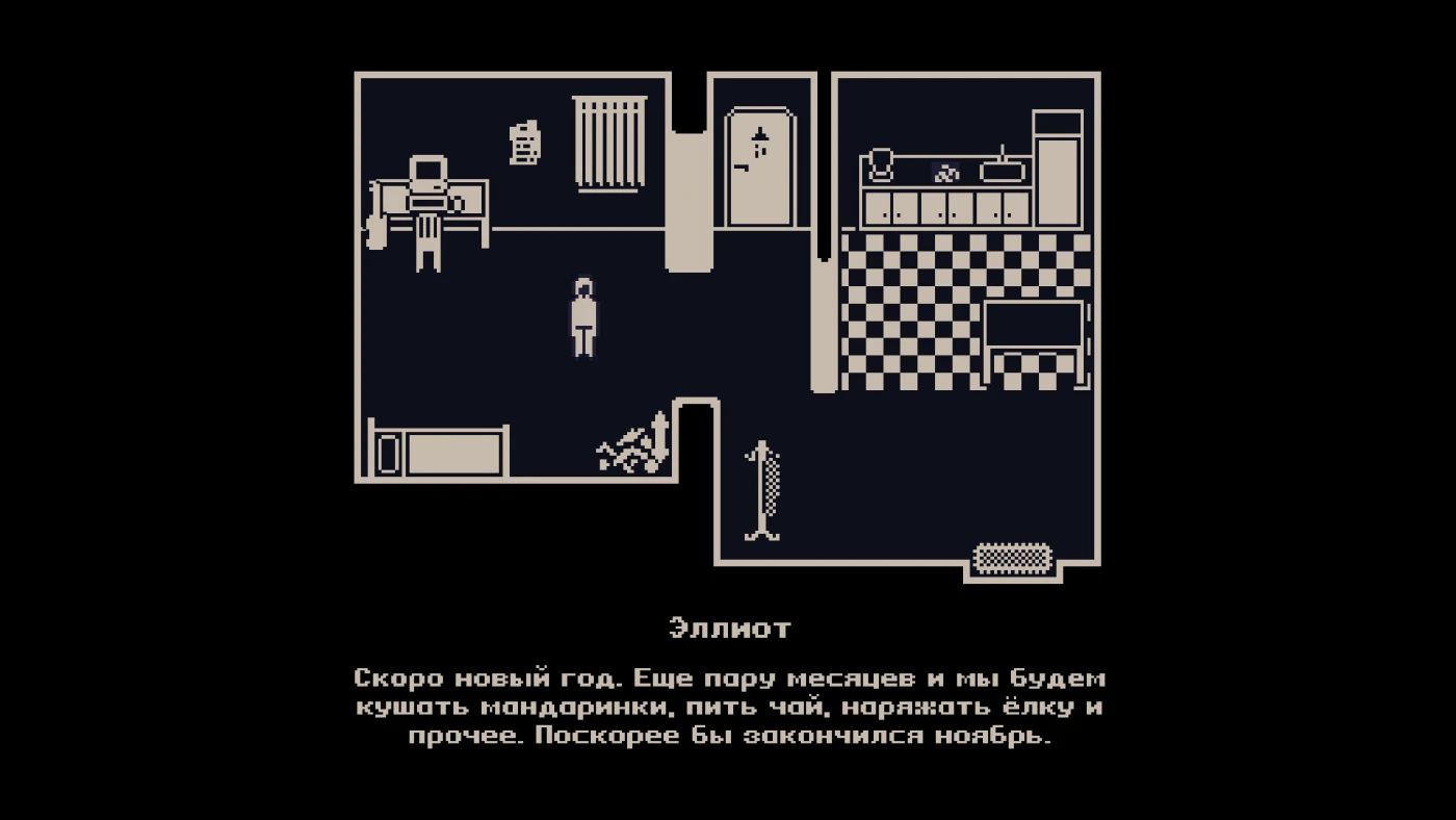 Игра не ограничивается чтением диалогов: вы исследуете комнату Эллиота, взаимодействуете с предметами, проходите мини-игры и даже собираете тело – всё это раскрывает слои его личности и прошлое. На выбор – два визуальных стиля: пиксельная ностальгия или более мягкий иллюстративный арт. Атмосфера усиливается мрачной музыкой, качественной озвучкой и моментами, где тревога перерастает в настоящую жуть.