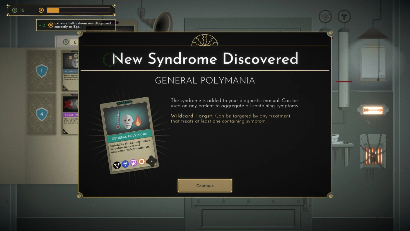 Лечение здесь – это не про эмпатию, а про выживание. Вы собираете колоду из тестов и методов, от френологии до экспериментальных процедур, и сортируете симптомы по зонам мозга, чтобы выявить синдромы. Одни карты помогают раскрыть скрытые признаки болезни, другие – подавить их, часто ценой человеческого достоинства. Хотите держать пациента дольше, чтобы заработать на улучшения? Или рискнёте отпустить его, зная, что это снизит ваш престиж и привлечёт подозрения начальства? Каждый выбор влияет не только на судьбу пациентов, но и на то, дойдёте ли вы до четвёртого корпуса, где томится ваша тётя.