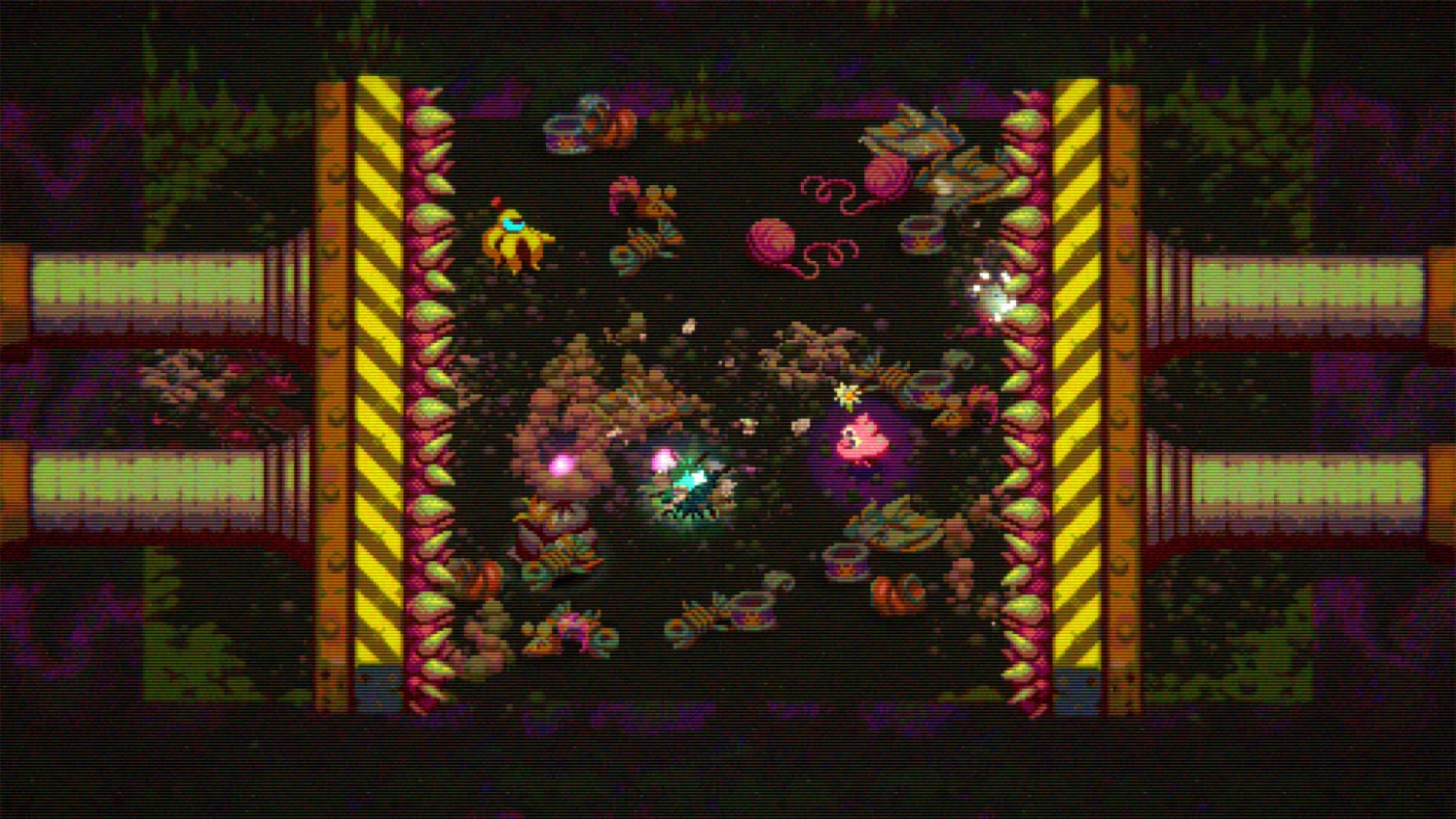 Вы можете взять до трёх Морселсов, переключаясь между ними в любой момент. Один стреляет пузырями, другой катится как валун, третий – змееподобная тварь, крушащая всё на своём пути. Уровни – это процедурные лабиринты с пульсирующими стенами, пилами, ловушками и фонтанами из чёрной жижи. Контролируя всё это с видом сверху, вы двигаетесь быстро, словно по следам Соника, но вокруг – постоянный хаос: враги, модификаторы, случайные события и мини-игры в стиле 80-х и 90-х. Наткнётесь на придорожного музыканта из мокрой травы или спящую енотовью попу, которая фыркает при ударе – здесь даже отбросы живут своей жизнью.