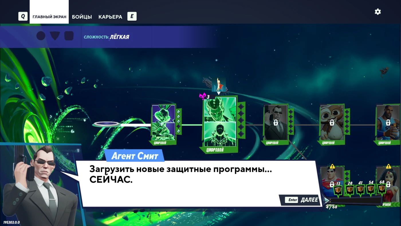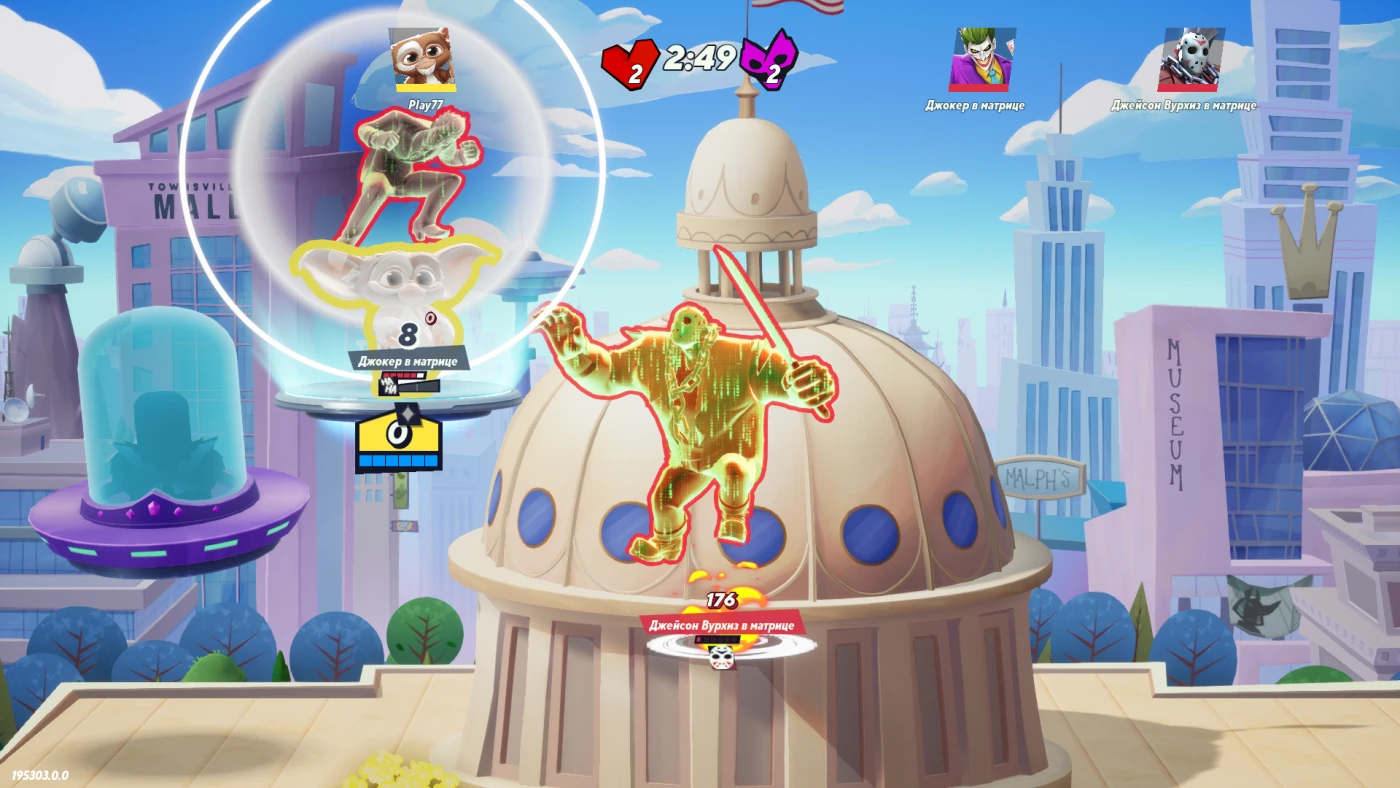 Бои строятся на проверенной схеме: наносите урон, чтобы сделать соперника уязвимым к выбросу за пределы арены. Но MultiVersus добавляет собственную изюминку – классы персонажей (танк, маг, поддержка и др.) и перки, которые можно комбинировать с союзником для усиления эффекта. Отсутствие хватки за край и традиционных предметов упрощает геймплей, но делает его более стратегичным: здесь важны тайминг, позиционирование и синергия с напарником. Хотя игра официально перешла в офлайн-режим с мая 2025 года, весь контент – от озвучки оригинальными актёрами до эксклюзивных скинов – остаётся доступен.