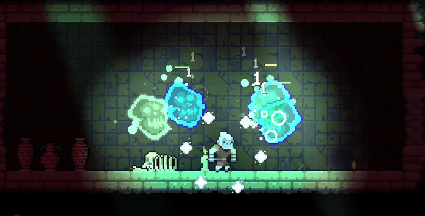 Dunjungle – рогалик-платформер, где вы играете за обаятельного обезьяноподобного героя в безумных костюмах, спасающего джунгли от таинственного зла. Стиль – пиксельный ретро-шарм, темп – стремительный, как у Dead Cells, а боевая система вдохновлена классическими Castlevania, только быстрее и веселее. Вы прыгаете, карабкаетесь по стенам, делаете двойной прыжок и уклонение с контратакой, вооружённые мечом, копьём или даже ракушкой-перчаткой – всего более 70 видов оружия, плюс три слота для дальних атак и магии.