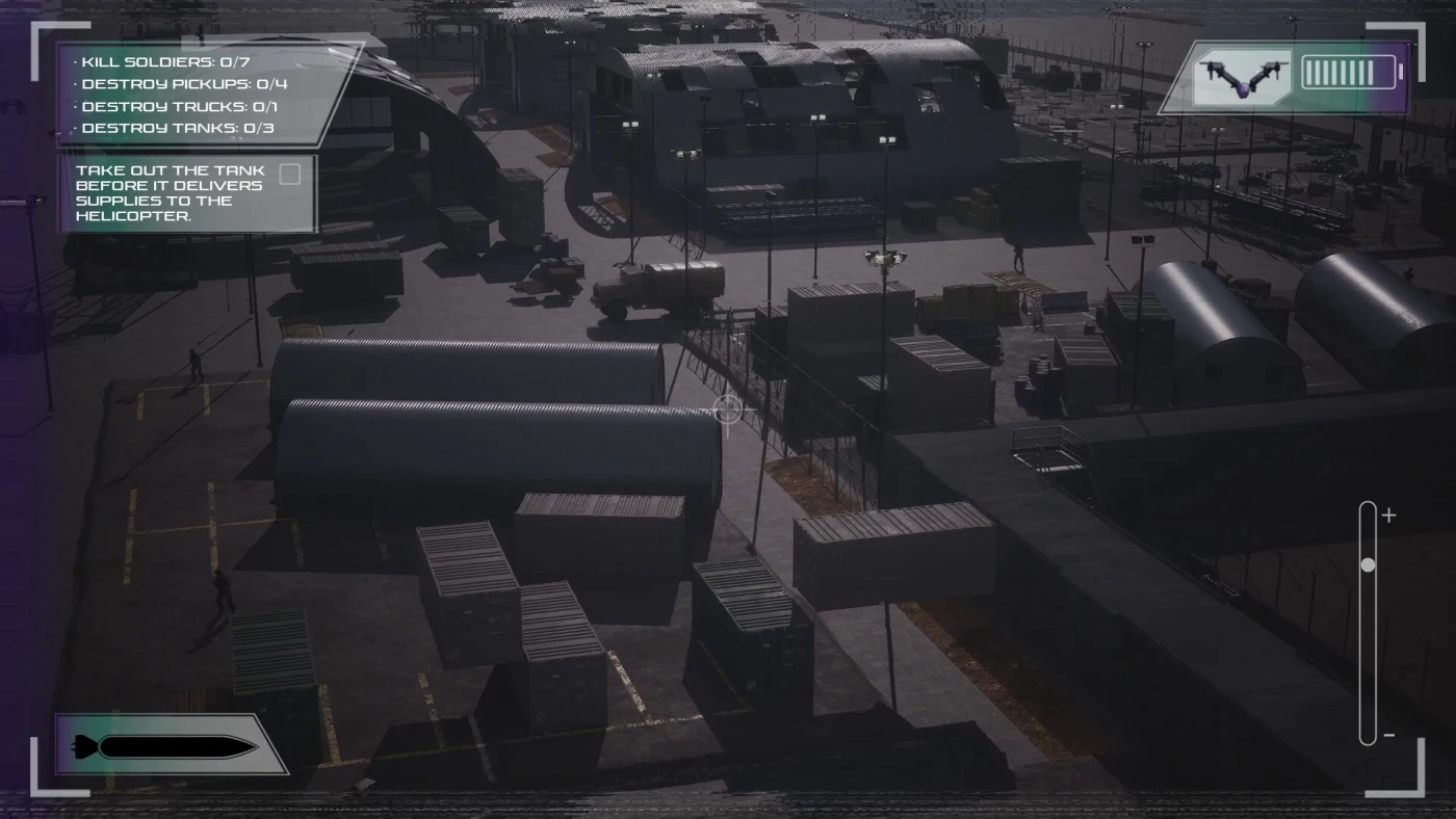 Управление здесь не просто отзывчивое – оно почти органичное. Дрон кренится, ускоряется и тормозит так, будто вы действительно держите в руках пульт FPV-пилота. Разные модели дронов предлагают разные тактики: кто-то летает как молния, едва касаясь земли, а кто-то несёт мощный заряд, но требует осторожного подхода. Вы не просто летите – вы чувствуете полёт, и именно это делает каждую попытку почти гипнотической.