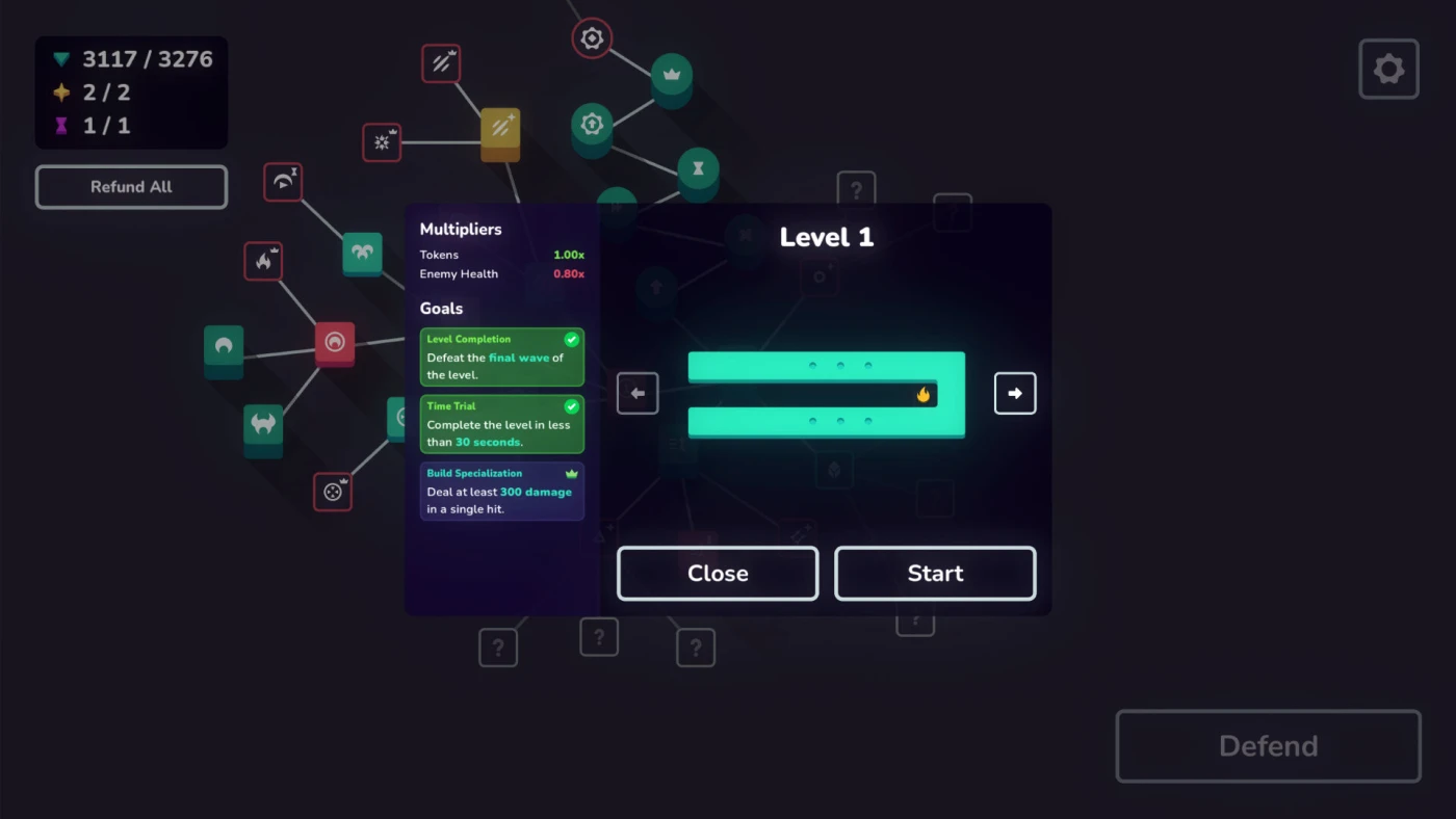 Дерево навыков здесь – не просто набор «+10% урона», а сеть осмысленных решений и синергий. Хотите сосредоточиться на одной башне или создать комбинацию из огня, молний и управляемого урона? Экспериментуйте – все улучшения можно сбросить бесплатно, так что пробовать новые подходы не только можно, но и нужно. Уровни дополняются специальными вызовами: например, намеренно получать урон или использовать только определённые типы атак.