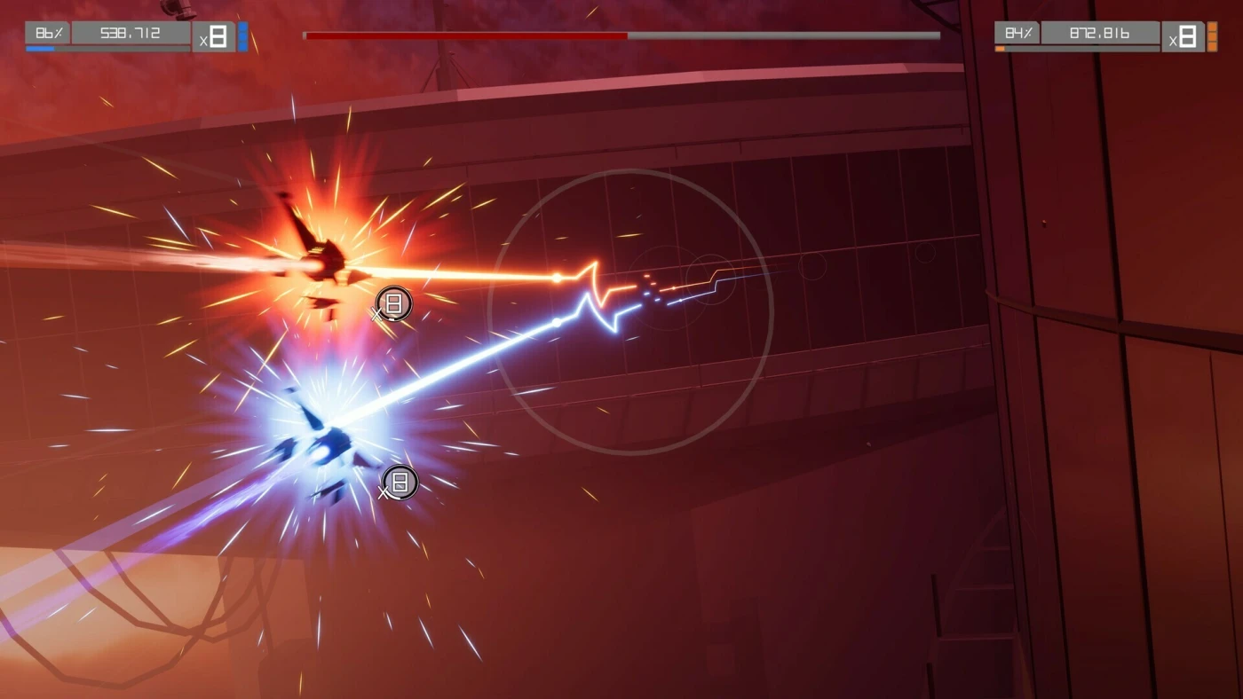 Aaero2 Black Razor Edition – ритм-шутер, где каждый выстрел, поворот и вспышка света слиты воедино с мощным электронным саундтреком. Вы управляете летающим кораблём, скользящим по извивающимся трассам-«лентам», следуя за музыкальными акцентами – держитесь ближе к линии, и звук будет чистым, сбились – и композиция начнёт «хрипеть». Одновременно с этим вы атакуете врагов: прицеливайтесь правым стиком, пускайте ракеты в такт басу или поливайте волны противников из автопушки. Чем точнее вы попадаете в ритм, тем выше счёт и быстрее перезарядка. Это не просто стрельба под музыку – это полное погружение в синестезию движения, звука и цвета.