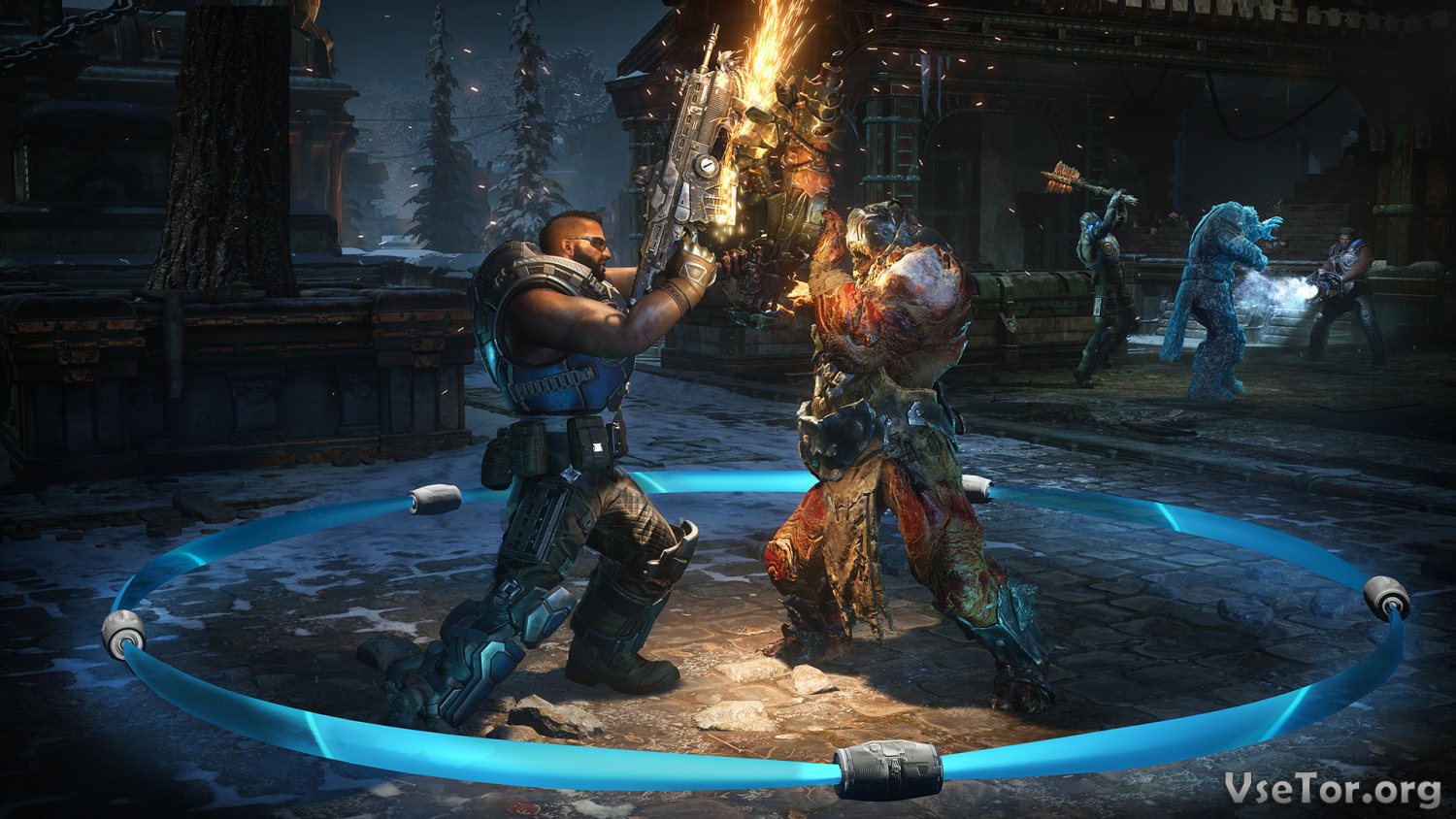 Еще одно новшество заключается в разнообразии локаций, на которых вам придется побывать в ходе прохождения Gears 5. Имеются и заснеженные локации с замерзшими озерами и снегом по колено, и зеленые локации, и даже тропические территории. Причем, во всех локациях царит по-своему уникальная атмосфера…