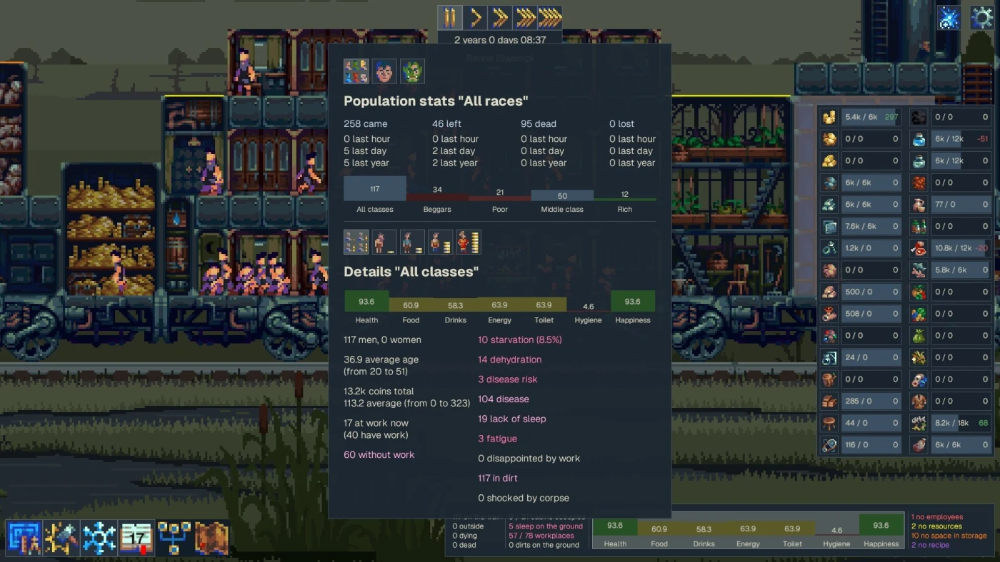 Жители Стилполиса – не пиксели в интерфейсе, а существа с выбором. Они сами решают, где работать, когда отдыхать и сколько тратить. Рабочий может уволиться, заработав нужную сумму, или сменить профессию, если дорога до места работы слишком долгая. А ещё здесь живут разные расы – люди, эльфы, орки – каждая со своими потребностями. Если благоустраивать только одну культуру, другие начнут недовольно ворчать, а то и вовсе перейдут к открытому конфликту. Да, каннибализм тоже возможен – так что следите за настроением.