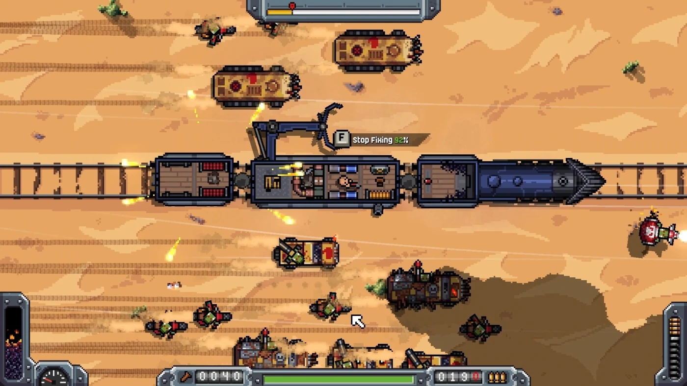 Apocalypse Express – экшен-менеджмент рогалик, где вы держите в руках судьбу поезда, мчащегося сквозь пустоши среди бесконечных атак бандитов и обломков прошлого. Ваша цель – не просто выжить, а продвинуться как можно дальше, нанося на карту то, что осталось от мира. Управляя каждым вагоном в реальном времени, вы прыгаете между модулями: тушите пожары, перезаряжаете пушки, ремонтируете броню и дергаете за рычаги на поворотах. Хаос гарантирован – всё ломается, горит и стреляет одновременно, а вы – единственный, кто может это остановить.