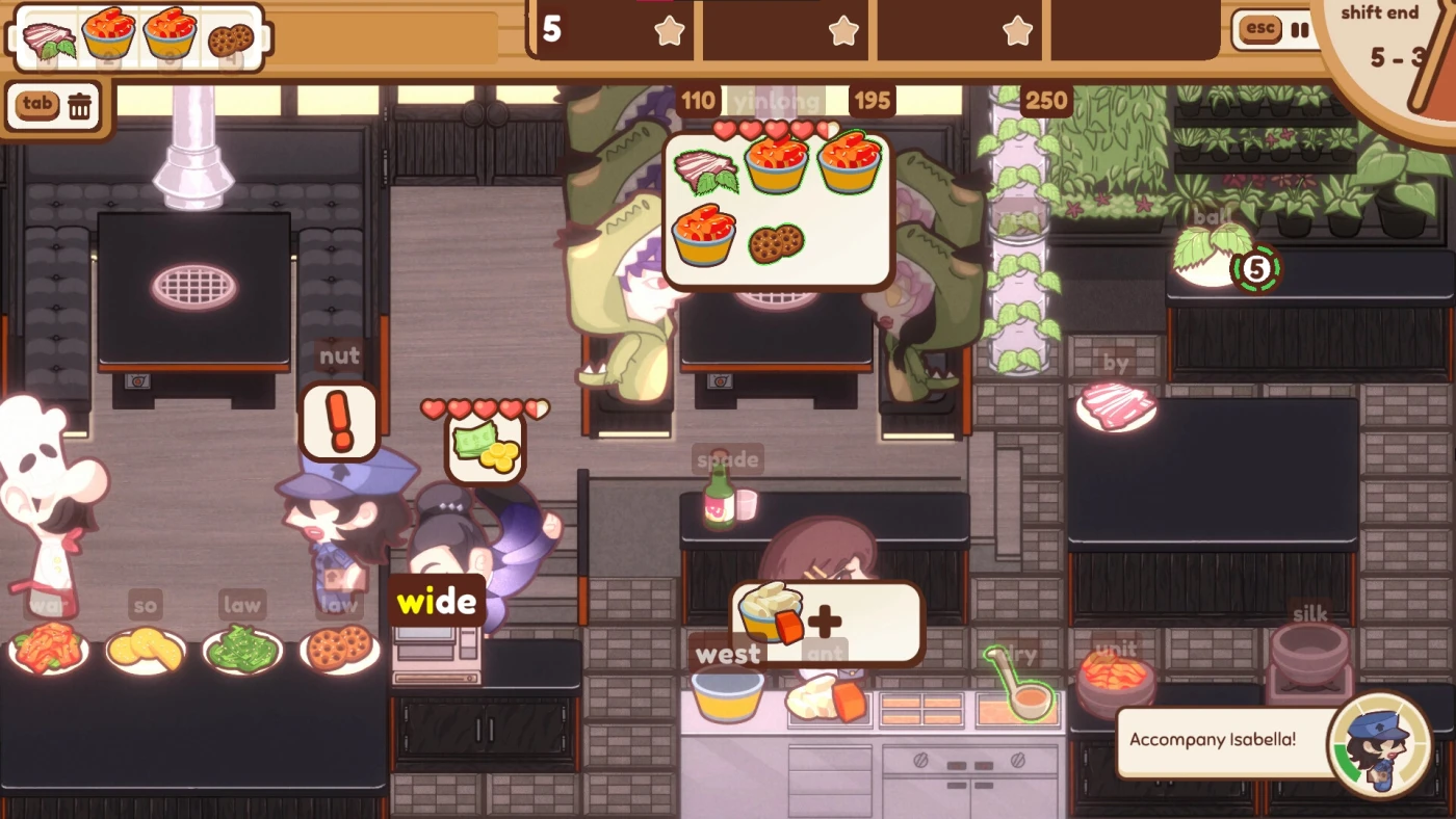 The Chef's Shift – динамичный симулятор кухни, где вместо мышки вы используете клавиатуру. Каждое действие – приготовить блюдо, подать заказ, взять оплату – требует ввода слова. Заказы появляются над головами клиентов, а чтобы их выполнить, нужно быстро находить ингредиенты и печатать соответствующие слова. Пицца? Сначала «base», потом «sauce», «cheese», «pepperoni» – и не забудьте «oven». Чем дальше, тем сложнее: многоэтапные рецепты, мини-игры, специальные клиенты, реагирующие только на эмодзи или цифры.