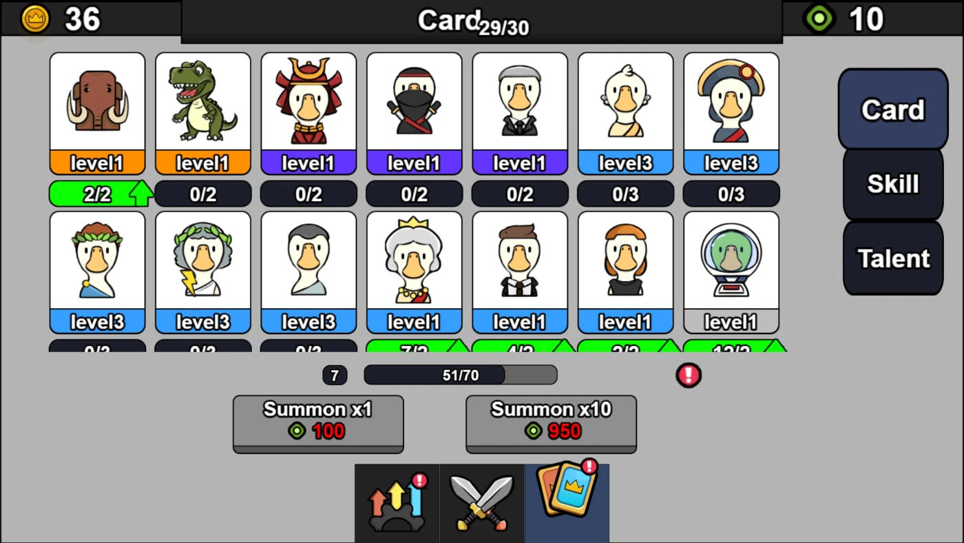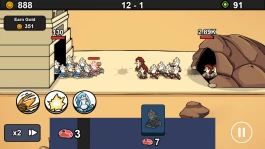 Каждая фракция предлагает три типа войск: ближние бойцы держат линию, стрелки наносят урон с дистанции, а супер-юниты меняют ход битвы одним действием. Размещайте армию стратегически, управляйте производством еды, укрепляйте базу и используйте карты способностей: от Леонардо да Винчи до Тираннозавров. Побеждённые враги оставляют зелья талантов, которые открывают узлы дерева прокачки, делая вашу стаю сильнее с каждым шагом.