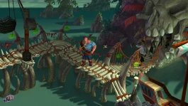 Графика может показаться простоватой, персонажи — неподвижными, но атмосфера прекрасна. Яркие фоны, живые диалоги и фирменный чёрный юмор создают ощущение, будто вы листаете старую комедийную пиратскую сагу. Каждый житель острова — запоминающийся и оригинальный, особенно шериф, который, кажется, единственный сохранил рассудок. Управление упрощено: клик — и появляются действия «поговорить / взять / ударить», что удобно новичкам, но ветеранам придётся терпеливо перебирать строки в поиске нужной подсказки.