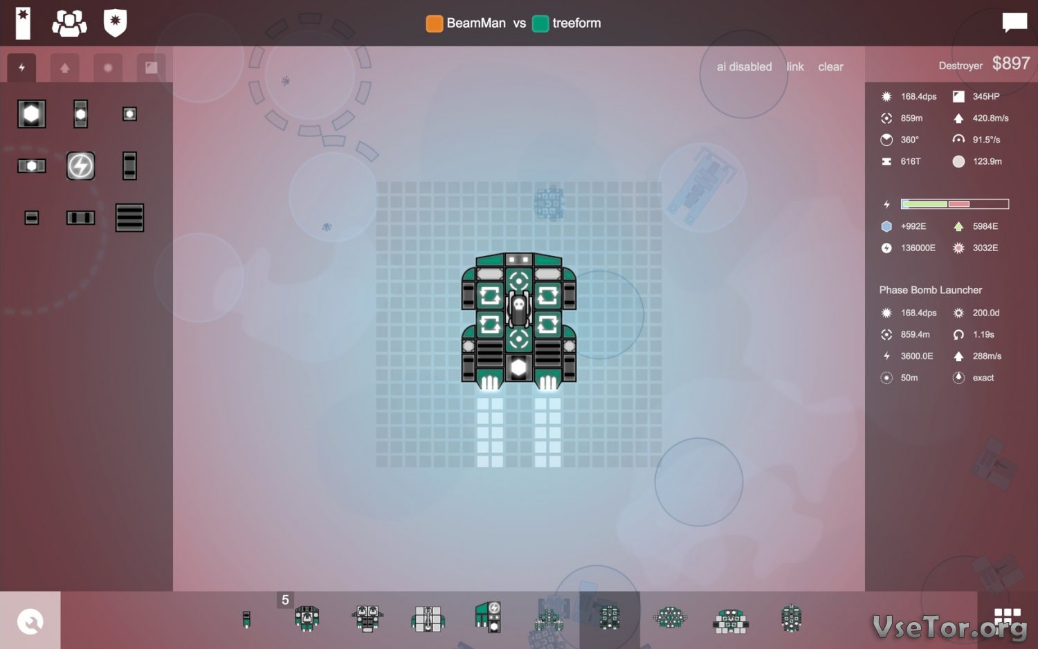 Еще один не менее важный момент заключается в широком ассортименте деталей, из которых вы будете моделировать космические корабли. Причем, вам придется создавать не один корабль, а сразу целую флотилию космических истребителей. В вашем распоряжении будет широчайший ассортимент модулей, усилителей, модификаций и деталей, и вы сами будете решать, какие из них использовать. Вы можете настроить быстрых и смертоносных истребителей с малым количеством жизней и отправить на помощь мощным, но неповоротливым кораблям, а можете и вовсе попробовать задавать противника массой. Вариантов более, чем предостаточно – вам остается лишь фантазировать, пробовать, экспериментировать и придумывать новые корабли.