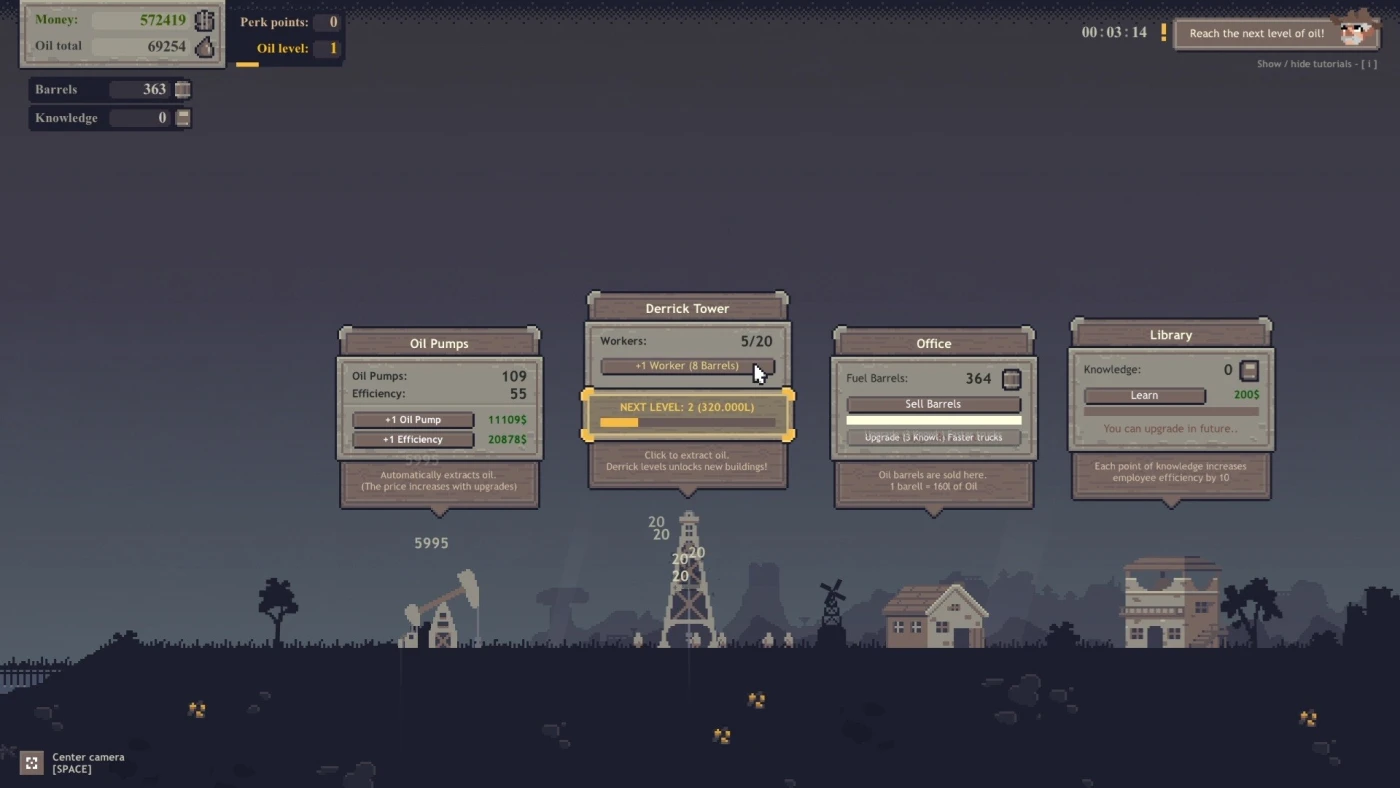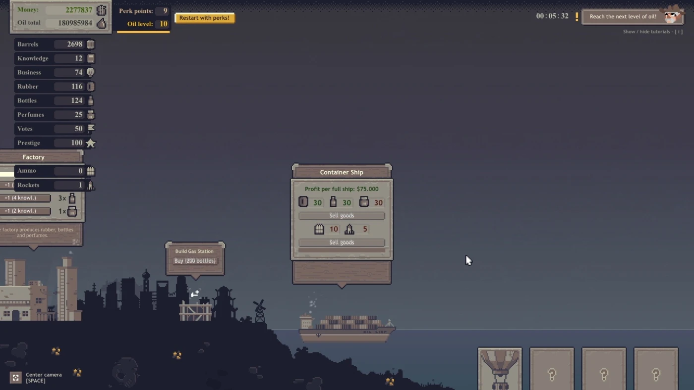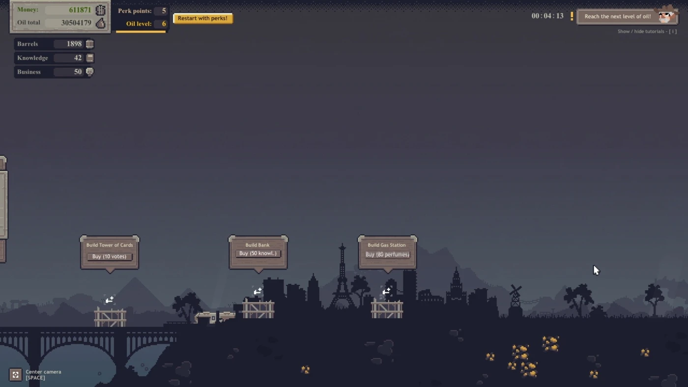 По мере накопления прибыли вы получаете Перк Поинты, которые можно потратить после завершения захода на постоянные улучшения. Хочется больше нефти? Быстрее транспортировки? Или публичного одобрения? Выбирайте стратегию: скупайте банки, выдавайте кредиты, подбрасывайте купюры с дирижабля в города — репутация растёт, а вместе с ней и доход. Всё это — в простом, но продуманном интерфейсе, который легко освоить, но интересно прокачивать до максимума.