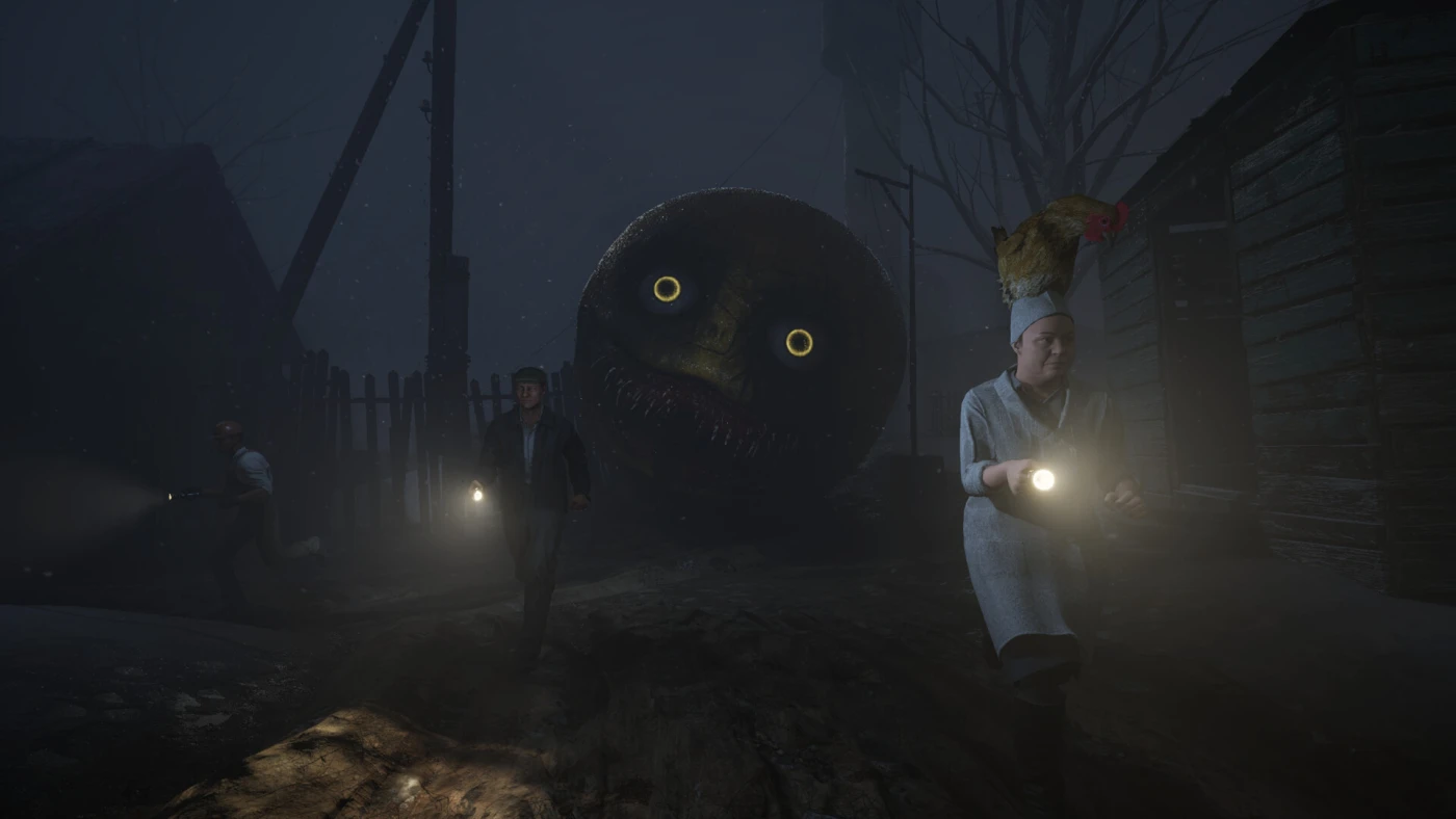 Вы исследуете зловещие локации, собираете магические ингредиенты: от водки до радиоактивных кирпичей — и варите зелье в избушке Бабы Яги. По пути сталкиваетесь с одержимыми курицами, гигантским камнем-охранником и Колобком, который явно не настроен на сказочный побег. Каждая задержка усиливает ужас: монстры становятся агрессивнее, тьма гуще, а время — всё короче.