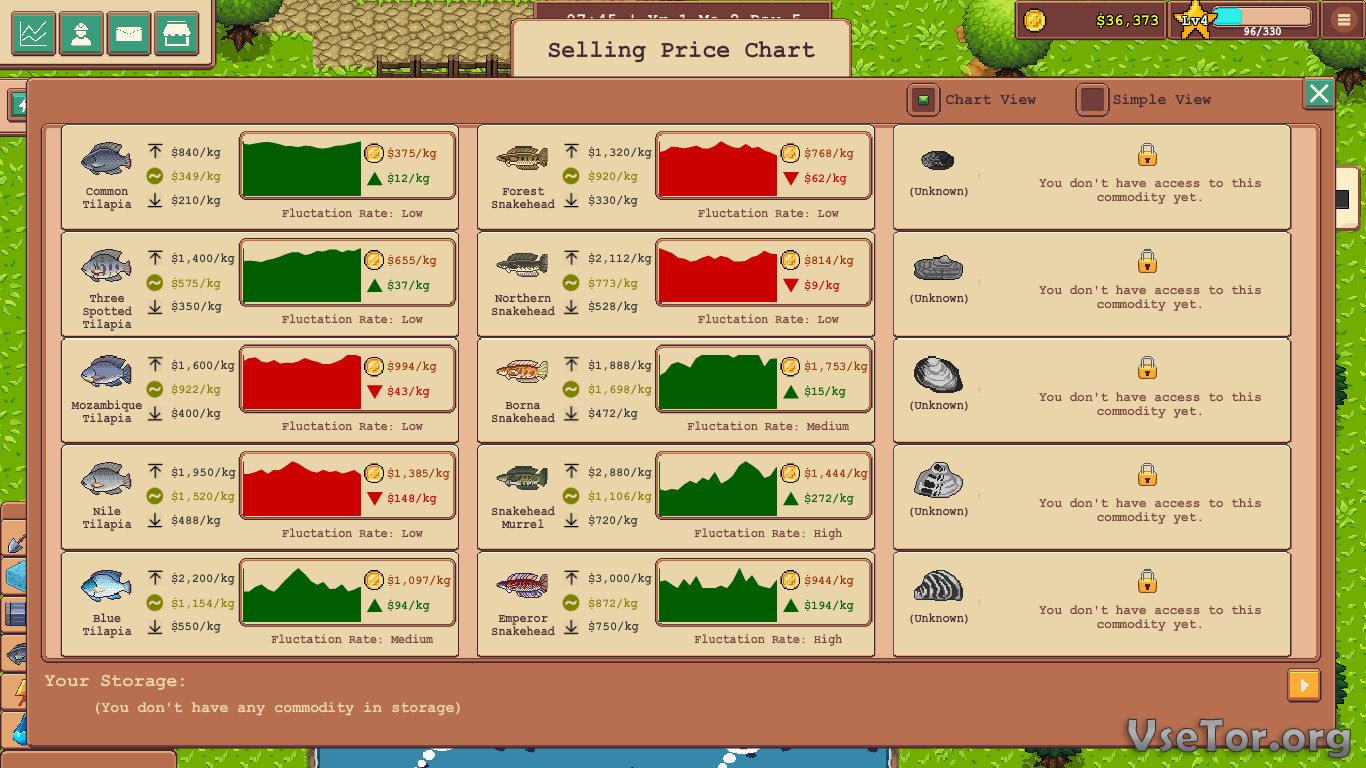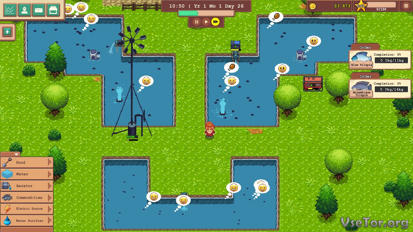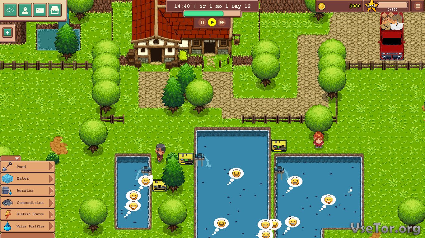Никакой сюжетной привязки в этой игре нет – это самая настоящая пиксельная песочница, в которой вы будете заниматься разведением рыбы и других морских обитателей с целью заработать на этом как можно больше денег. Казалось бы, что тут интересного? – сделал пруд, запустил рыбу, и вперед, зарабатывать деньги. Но на самом деле вы будете сильно удивлены тем перечнем сложностей и проблем, которые будут постоянно препятствовать вам в вашем деле. То рыба будет голодать, то вода начнет сильно загрязняться, а то и вовсе некоторые породы рыб могут оказаться попросту несовместимыми. В общем, придется очень нелегко.