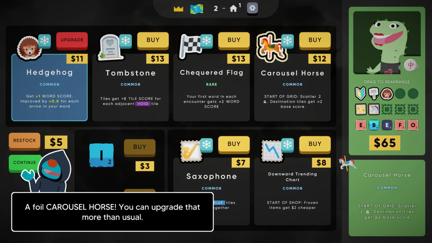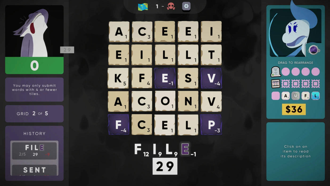 Cursed Words: The Word Game That Isn't — это рогалик, где вы составляете слова на сетке из букв, но очень быстро всё превращается в настоящее безумие. Поначалу кажется, что играете в необычный вариант Боггл или Скрэббла: соединяете буквы, набираете очки и проходите этапы. Но уже через пару партий начинаете покупать странные стикеры, марки и плитки, которые полностью меняют правила. Вдруг пустые клетки начинают приносить очки, обычные буквы превращаются в цифры или шахматные фигуры, а множители зависят от того, сколько денег у вас накопилось.