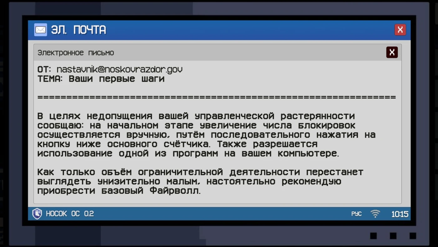 Игра подаёт всё с серьёзным ведомственным лицом. Вы читаете сухие официальные новости и сводки, которые становятся тем смешнее, чем абсурднее ситуация. Можно вручную вводить любые адреса и блокировать их — от популярных сервисов до совсем уж неожиданных вещей. Следите за уровнем общественного недовольства, которое постепенно превращается в очередной показатель вашей эффективности. В конце вас ждёт цель в миллиард блокировок, после которой становится понятно, что процесс уже давно живёт своей жизнью. У нас вы можете скачать Носковраздор торрент последнюю версию бесплатно на компьютер.