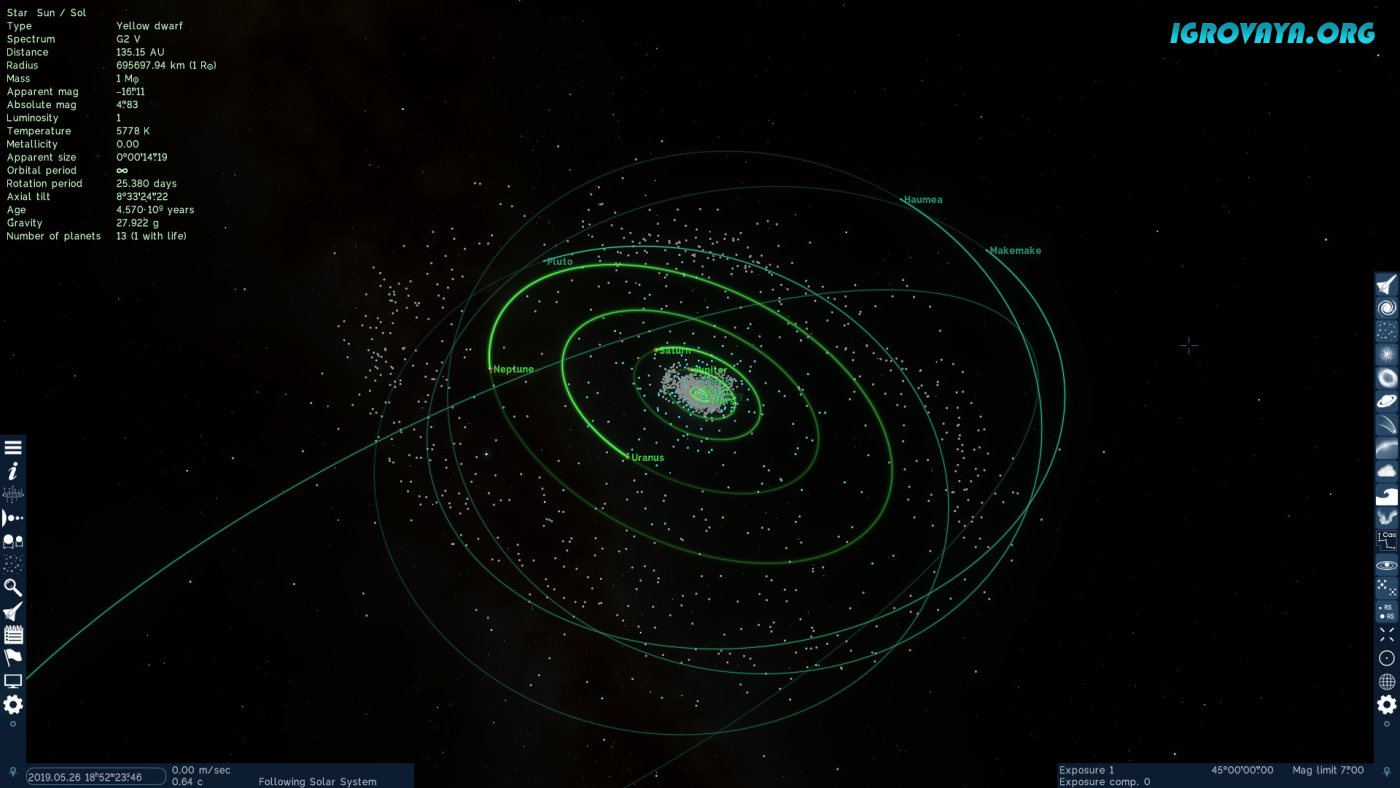 Красивейшая графика, генерирующийся автоматически окружающий мир, десятки и сотни планет, столько же звездных систем, звезды, метеориты, астероиды и черные дыры – все это позволит вам по полной проникнуться атмосферой космической бесконечности, созданной автором проекта. У нас вы можете скачать SpaceEngine торрент последнюю версию бесплатно на компьютер.