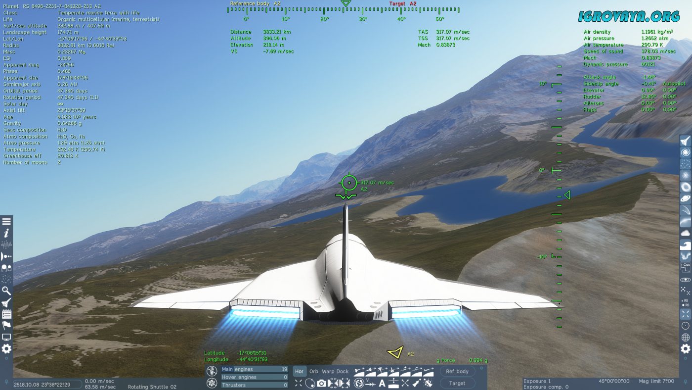 Что до путешествия по космосу, так оно может осуществляться вами в нескольких разных режимах. Самый стандартный режим предполагает простое путешествие в бестелесном виде – вы просто летите вперед с видом от первого лица, пролетаете сквозь объекты, и наслаждаетесь красотами. Второй же способ полюбоваться космосом, это выбрать объект из тысячи доступных в списке и долететь до него за секунды. Ну а третий и вовсе интереснее всего – вы можете создать космический корабль и отправиться в путешествие в режиме симулятора.