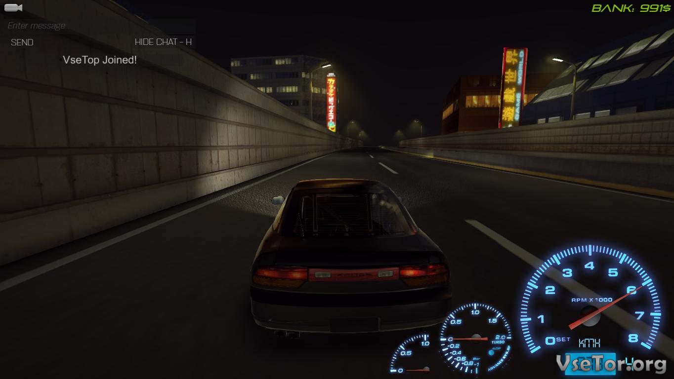 Гонки проходят в ночное время суток. Но поверьте, от этого становится лишь веселее. Тщательно проработанное окружение, фонарный свет, горящие вывески по сторонам, ослепляющий свет фар и неоновые подсветки позволят вам проникнуться атмосферой на все сто процентов. А плюс ко всему вас ждет отпадная реалистичная физика. Благодаря которой сам по себе дрифт смотрится настолько круто, что порою так и хочется испытать такое же в реальности.